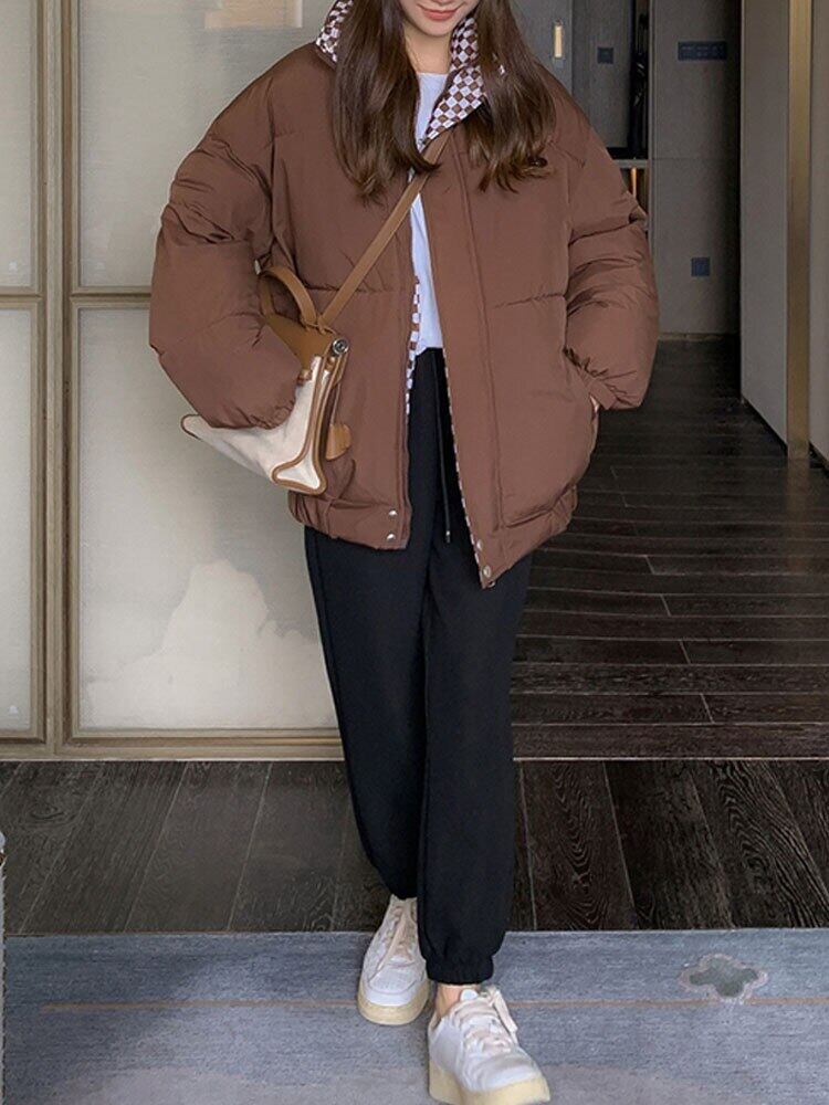 スタンドカラーブラウンブラックコットンパッド入りレディダウンジャケット暖かい厚い冬のコートの女性パーカージッパーコート服 ウィンター 冬物 Aim73318519124