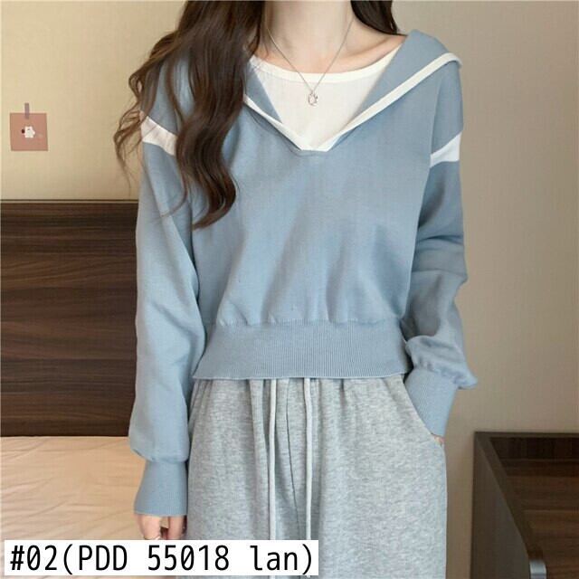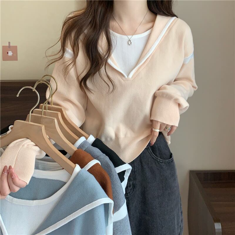 フード付き ニットセーター 春 秋 フェイク二枚 プルオーバー ニット トップス オールマッチ セーター スプリング 春物 オータム 秋物 Aim55208815527