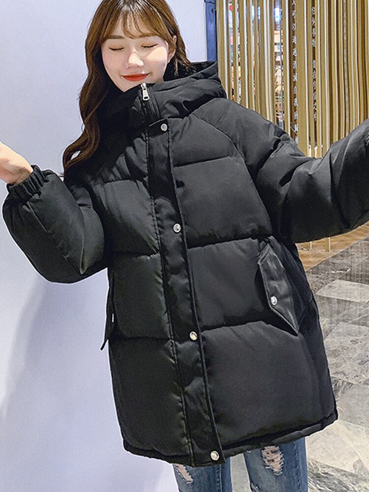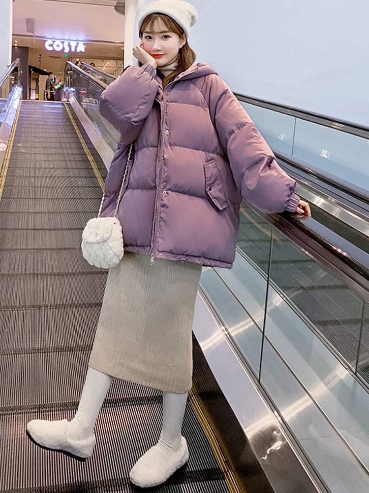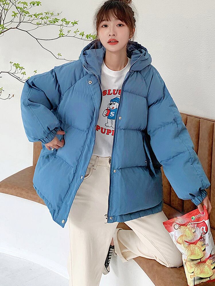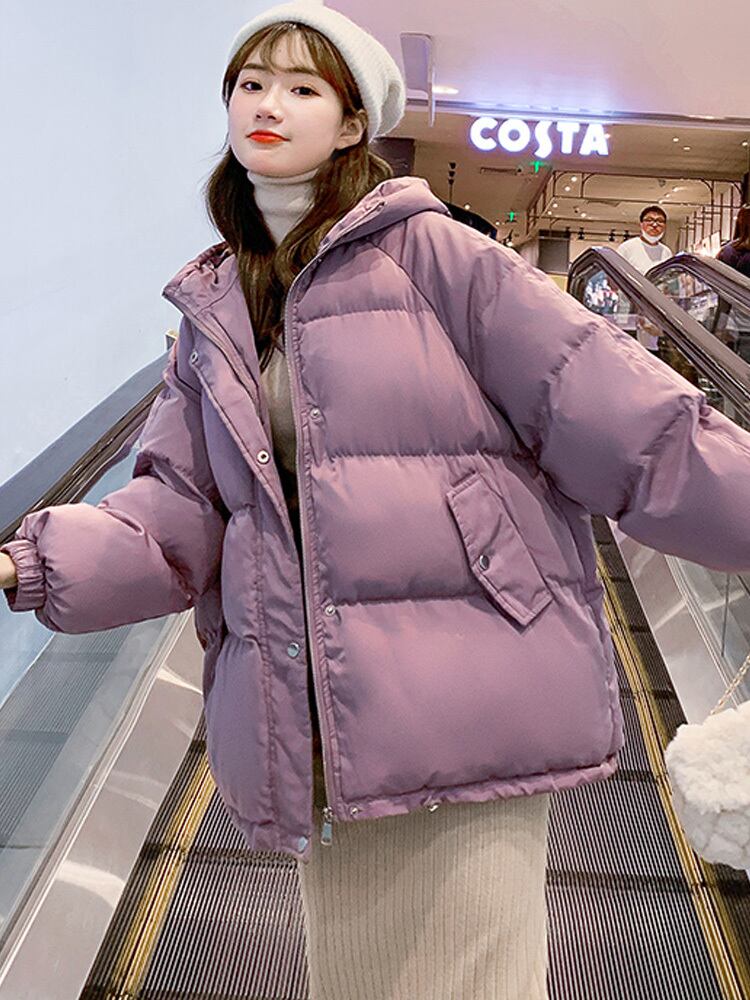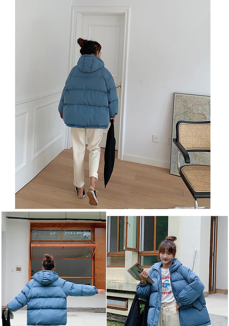 冬のジャケットの女性厚いフード付きコットンパッド入りショートフグコート韓国固体特大ショートパーカー生き抜く ウィンター 冬物 ソリッドカラー Aim39295818955