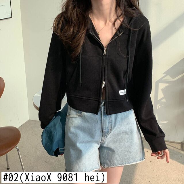 韓国パッチワーク長袖フード付きトレーナー原宿女性パーカージップアップショートコート y2k 服若いカーディガンジャケット ロング かわいい Aim75583616937