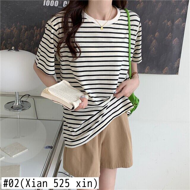 原宿 先染め スペルカラー ストライプ Tシャツ バックパッチ 白黒 トップス 半袖 レディース Tシャツ ゆったり ベーシックTシャツ ショート ホワイト ブラック ハーフスリーブ かわいい Aim32390979023