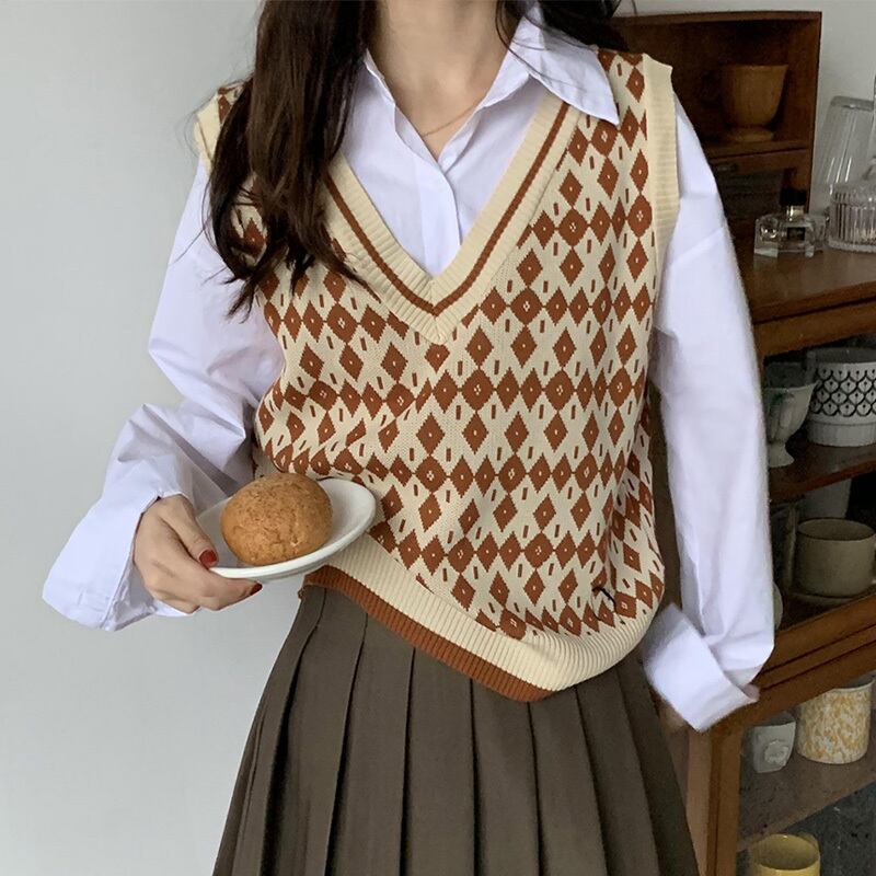 春秋の女 スプリング 春物 オータム 秋物 ノースリーブ Vネック Aim86801574254
