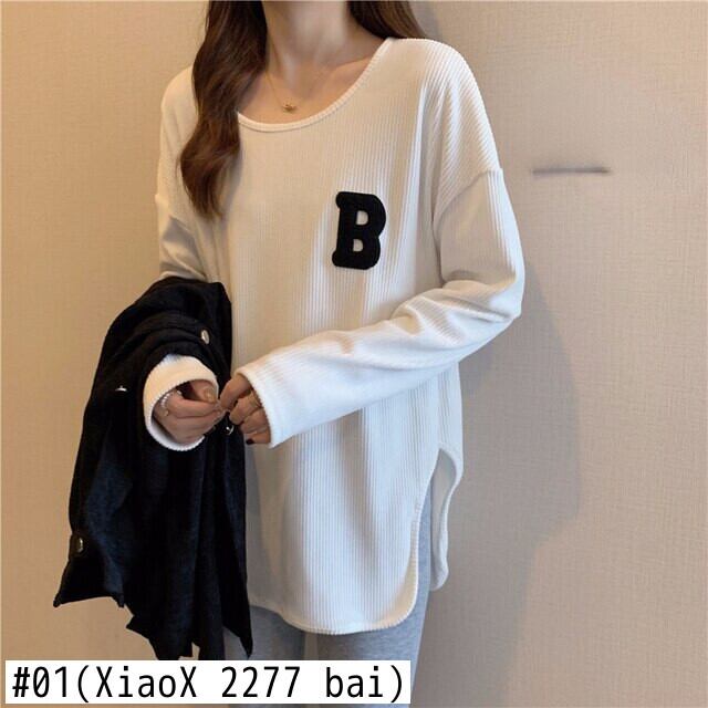 秋冬レター刺繍コーデュロイ Tシャツ女性固体特大サイドスリット女性 tシャツ長袖底入れ y2k トップス ロング オータム 秋物 ウィンター 冬物 ソリッドカラー Aim49133983061