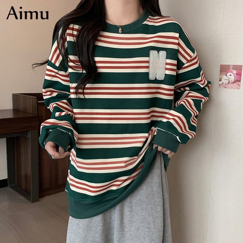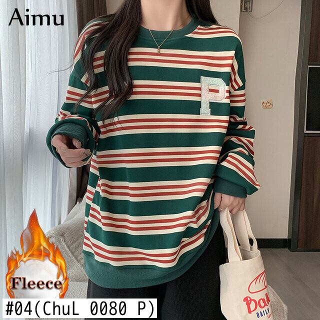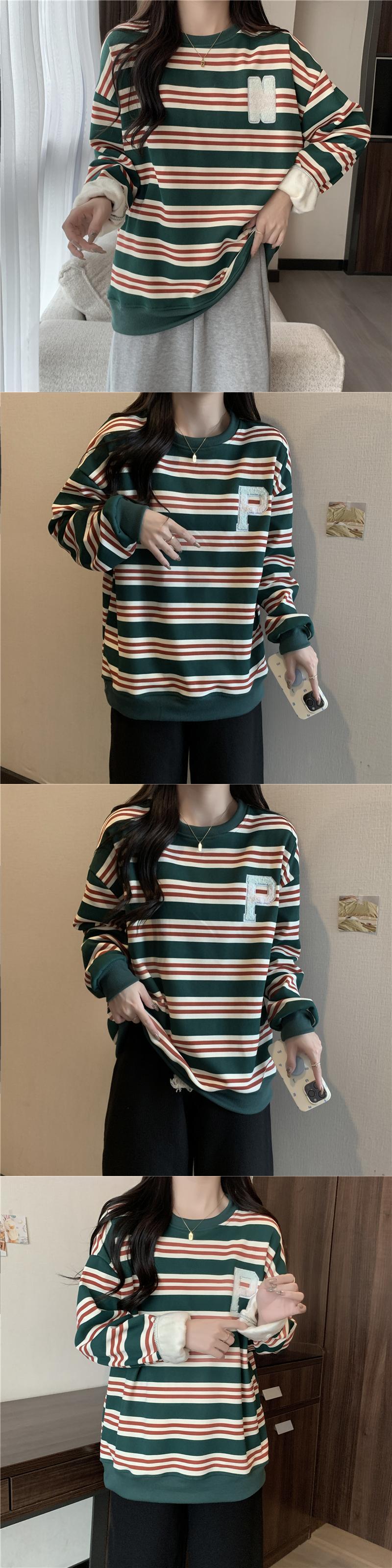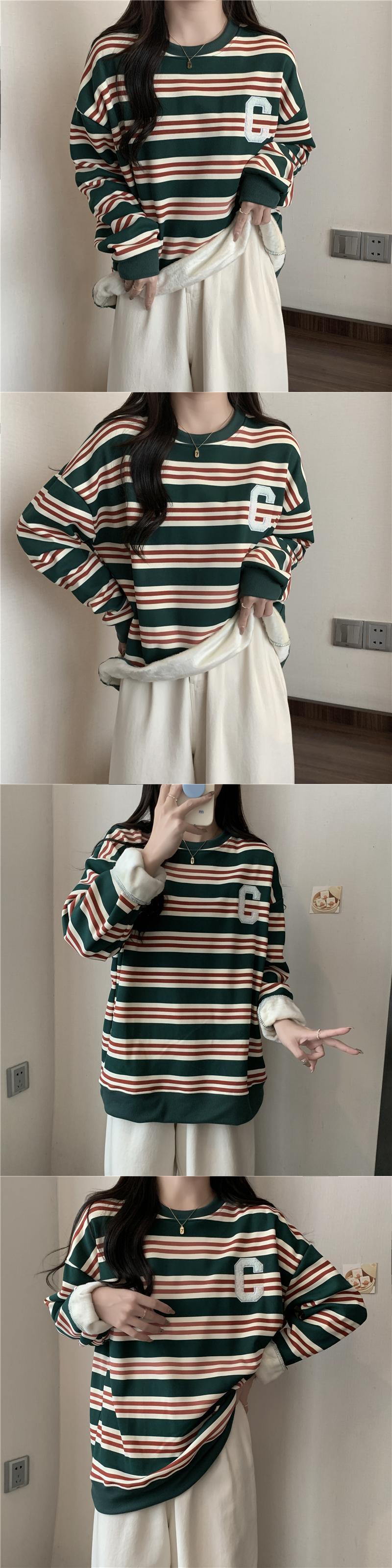 冬の服の女性原宿ストライプ厚いベルベット特大パーカー韓国フリース暖かい特大パーカーカジュアルトレーナー女性 かわいい ウィンター 冬物 Aim42637267326