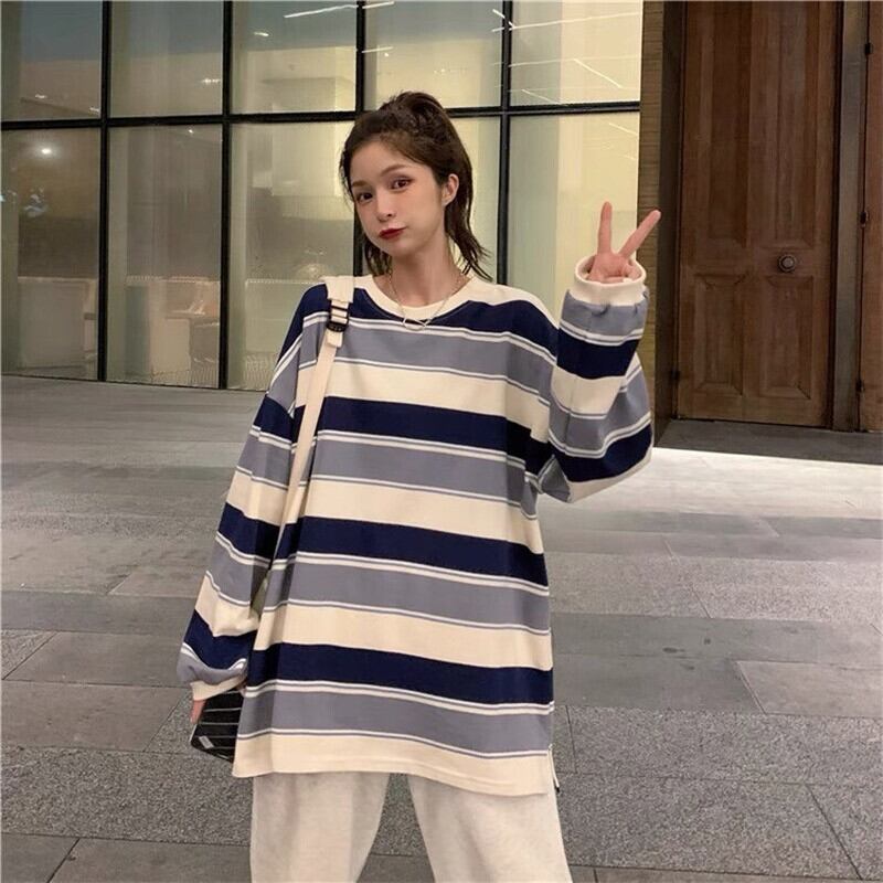 秋パーカーストライプトレーナーストリート女性原宿特大プルオーバーカップルマッチング長袖トップス ロング かわいい オータム 秋物 Aim333955382