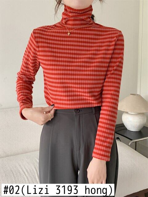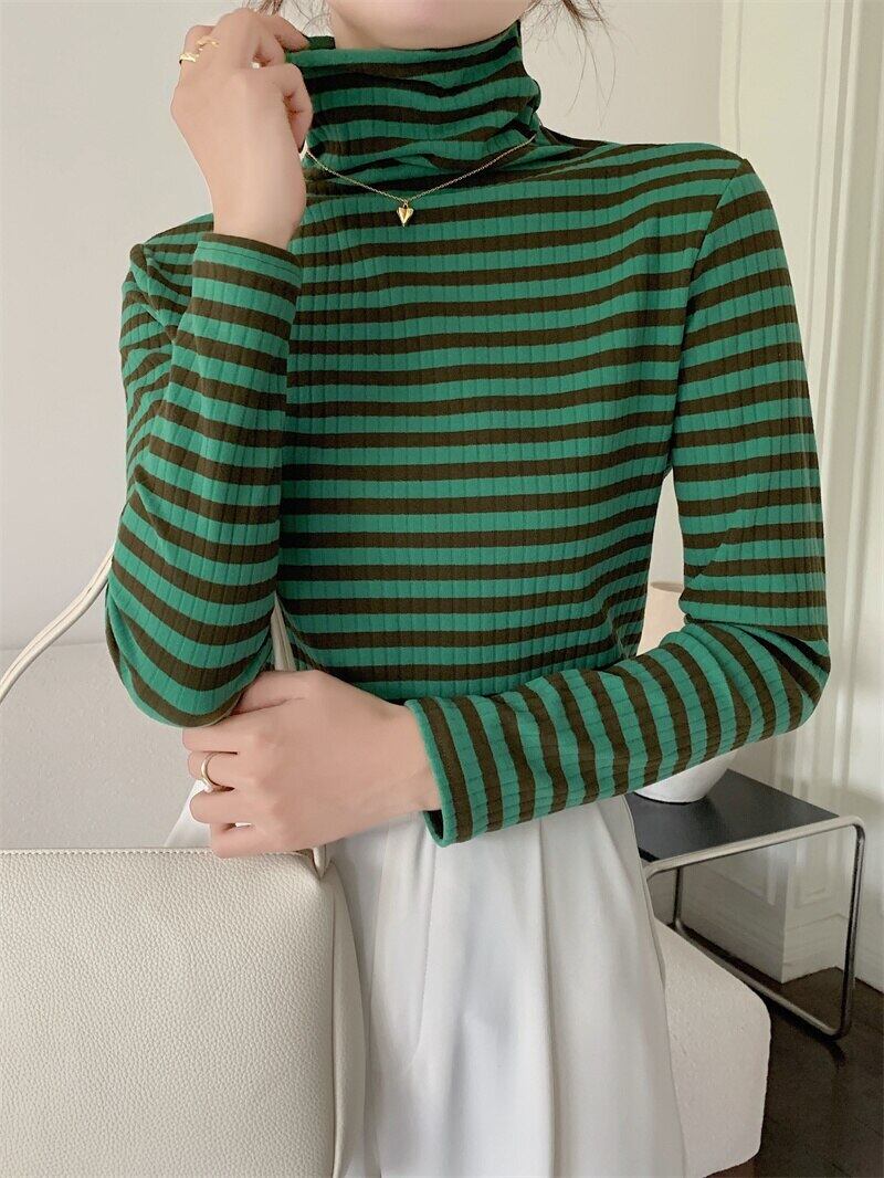 春秋長袖ストライプニットセーター女性のプルオーバー韓国スリムタートルネックセーター女性の底入れセータートップス ロング スプリング 春物 オータム 秋物 Aim71217602076