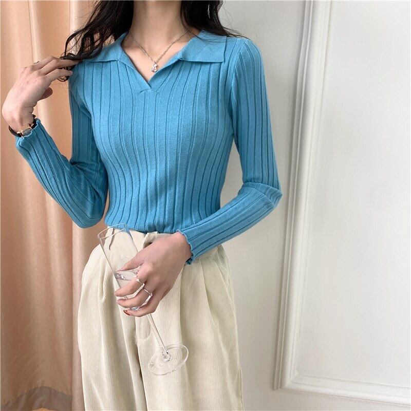 女性長袖ソリッドオールマッチセーター春秋スリムトップススタイル薄いニットプルオーバー ロング スプリング 春物 オータム 秋物 ソリッドカラー Aim67444919488