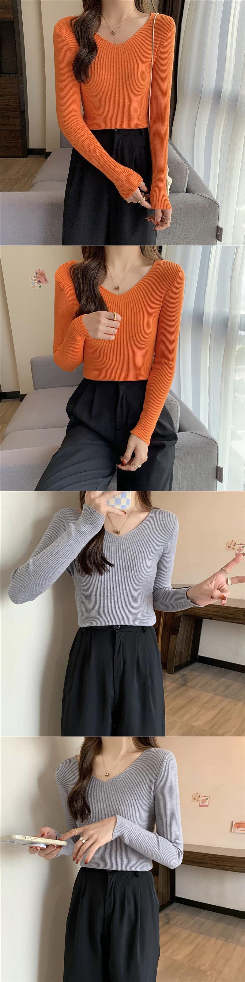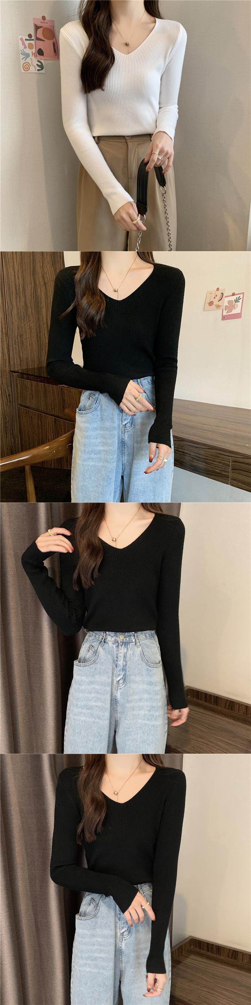 秋の基本的な V ネックスリム女性のセータープルオーバー長袖セーター女性ソフトスリムジャンパー底入れトップス ロング オータム 秋物 Vネック Aim69827693153
