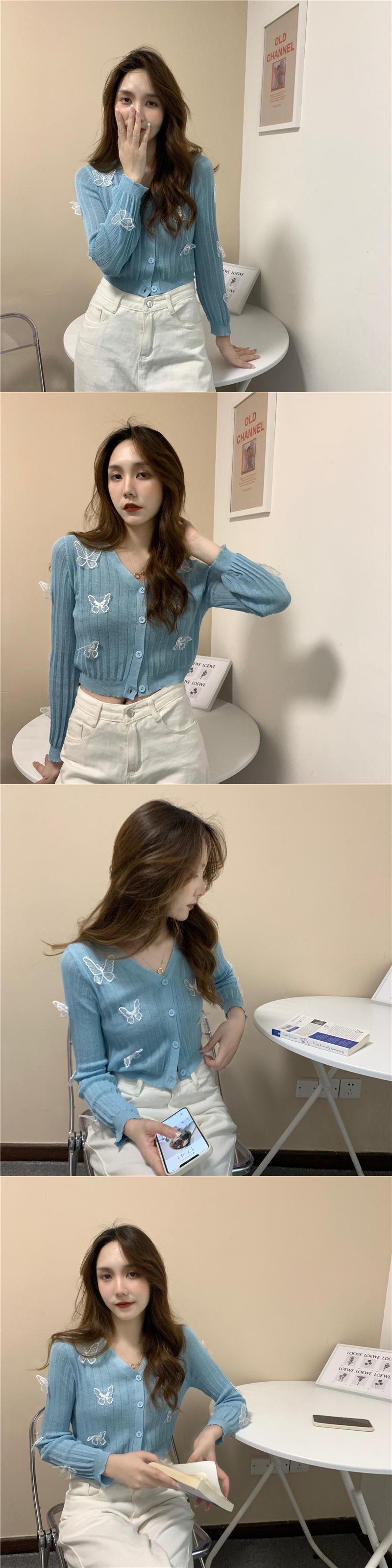 V ネック女性カーディガンシンプルな立体蝶薄型カーディガン甘いニットセーターボタン固体長袖トップ кардиган ロング 大人ガーリー スウィート キュート カジュアル ソリッドカラー Aim18895563475