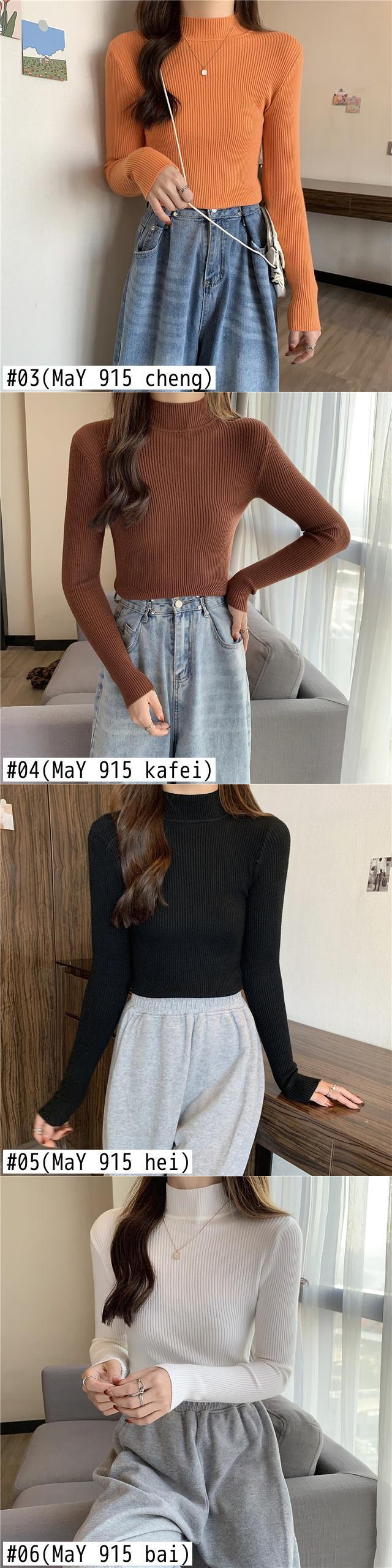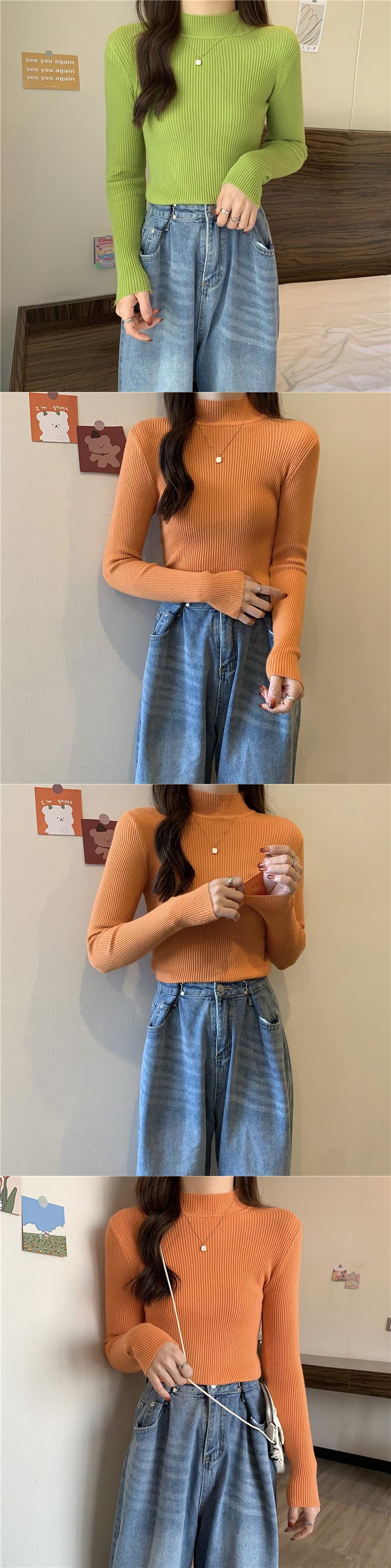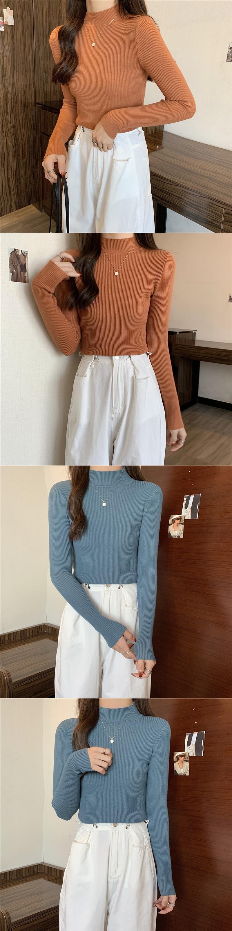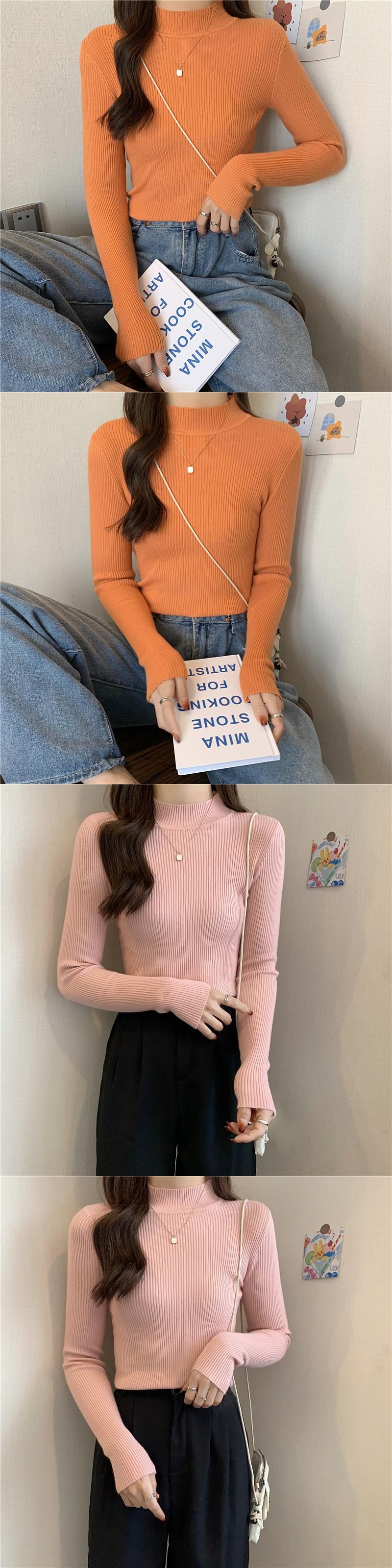 秋長袖女性のセータープルオーバーソリッドスリム薄型ニットセーターファッションハーフタートルネック弾性底入れトップス ロング エラスティック 伸縮 オータム 秋物 ソリッドカラー Aim42249142406