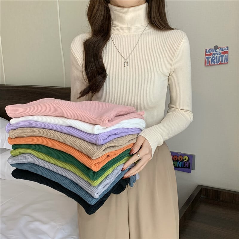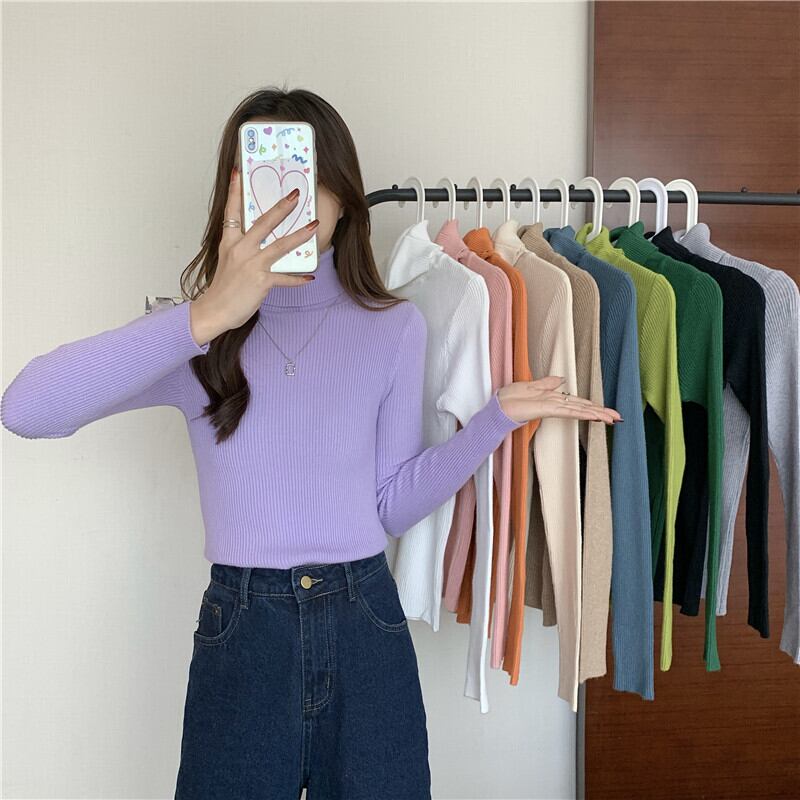 新秋冬スリムプルオーバータートルネック固体セーター女性の基本的な底入れトップスソフトニットセータージャンパー y2k 服 オータム 秋物 ウィンター 冬物 ソリッドカラー Aim46425527768