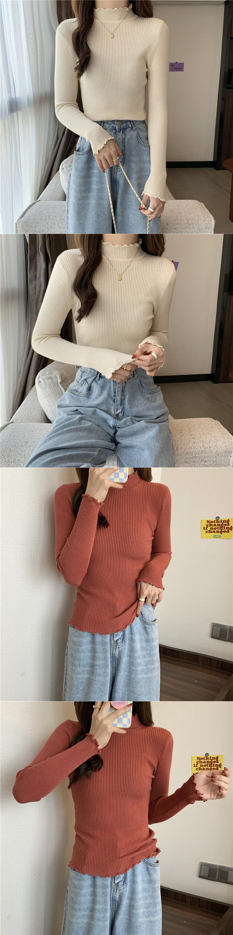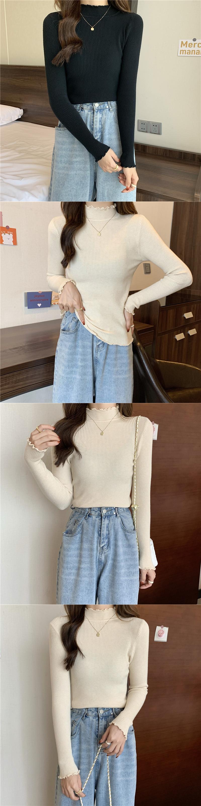 秋の女性プルオーバーセーターハーフタートルネックニットセータージャンパー長袖固体ソフトスリム弾性ブラウス ロング エラスティック 伸縮 オータム 秋物 ソリッドカラー Aim47268056598