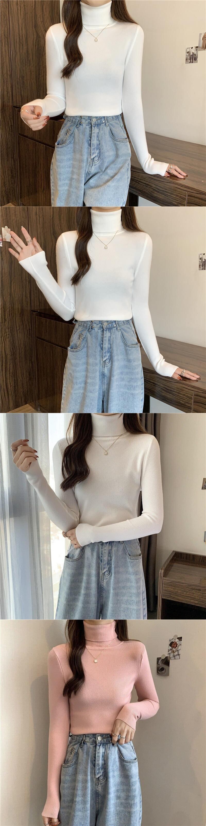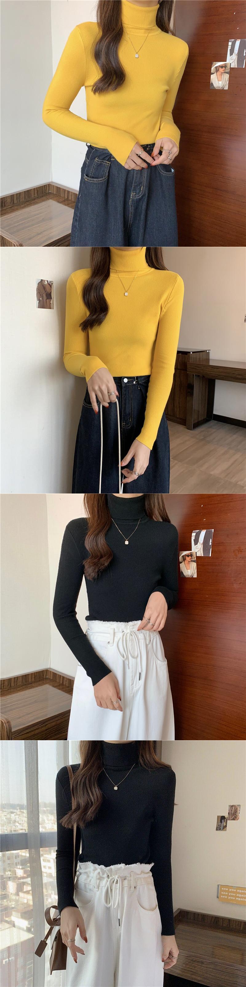 秋のニットセーターとジャンパータートルネックトッププルオーバー女性セーター長袖オールマッチ弾性固体 y2k 服 ロング エラスティック 伸縮 オータム 秋物 ソリッドカラー Aim7763360698