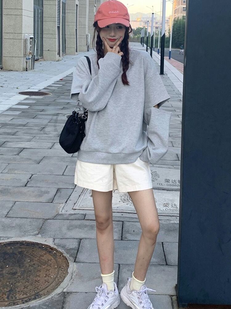 秋長袖特大薄型スウェット原宿固体穴パーカー女性ストリートゴスパープル y2k トップス女性服 ロング シャツ かわいい オータム 秋物 ソリッドカラー Aim93348599633