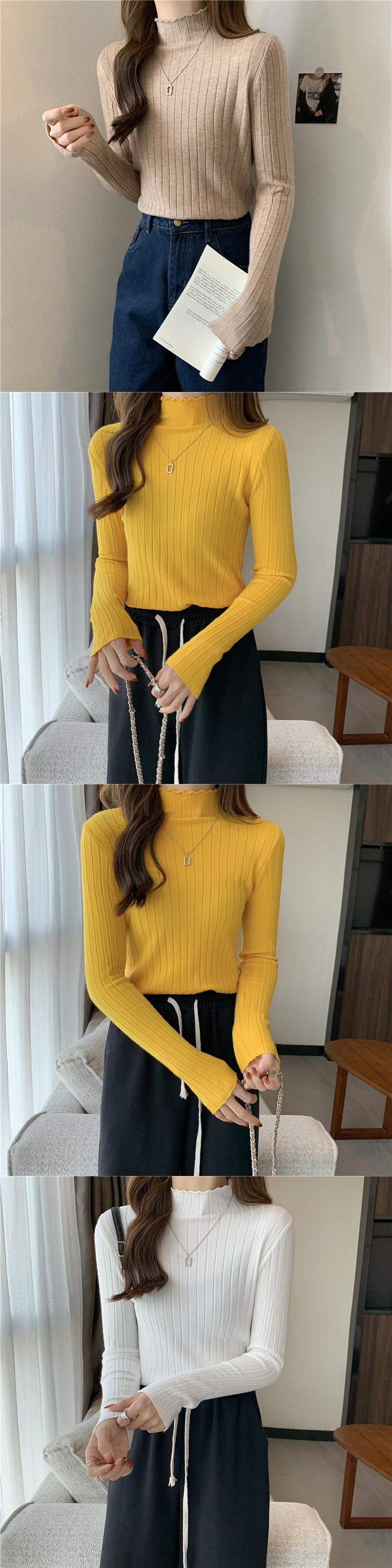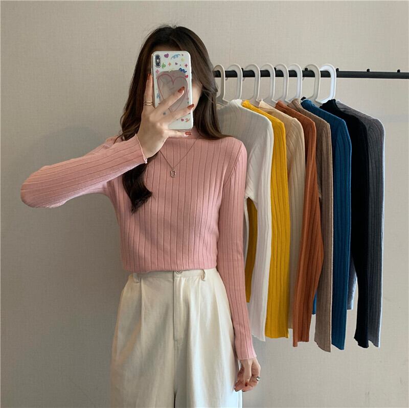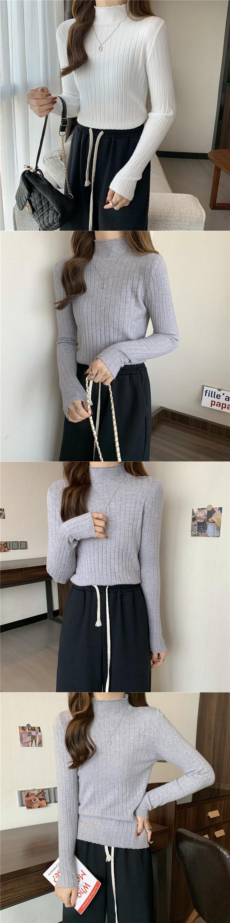 長袖セーター女性プルオーバーソリッドブラックホワイトニットセーターファッションハーフタートルネックの基本的な底入れトップス ロング ソリッドカラー Aim30592223823