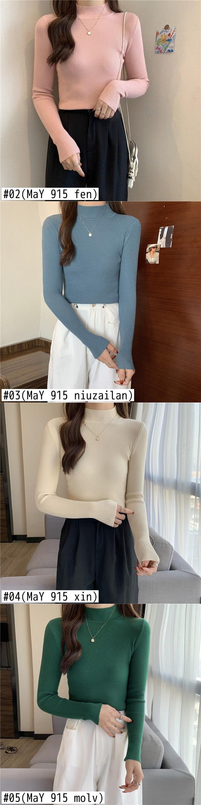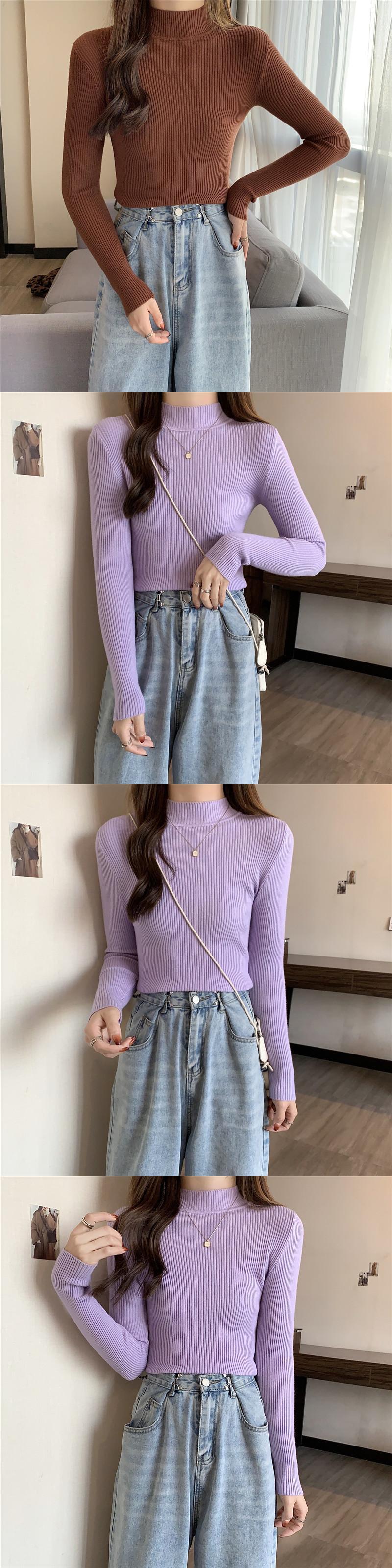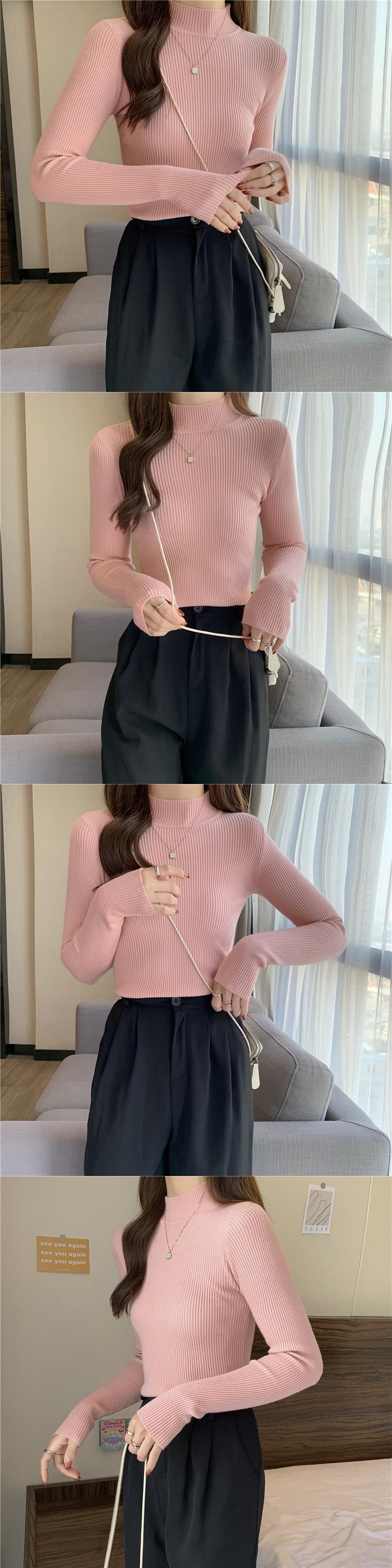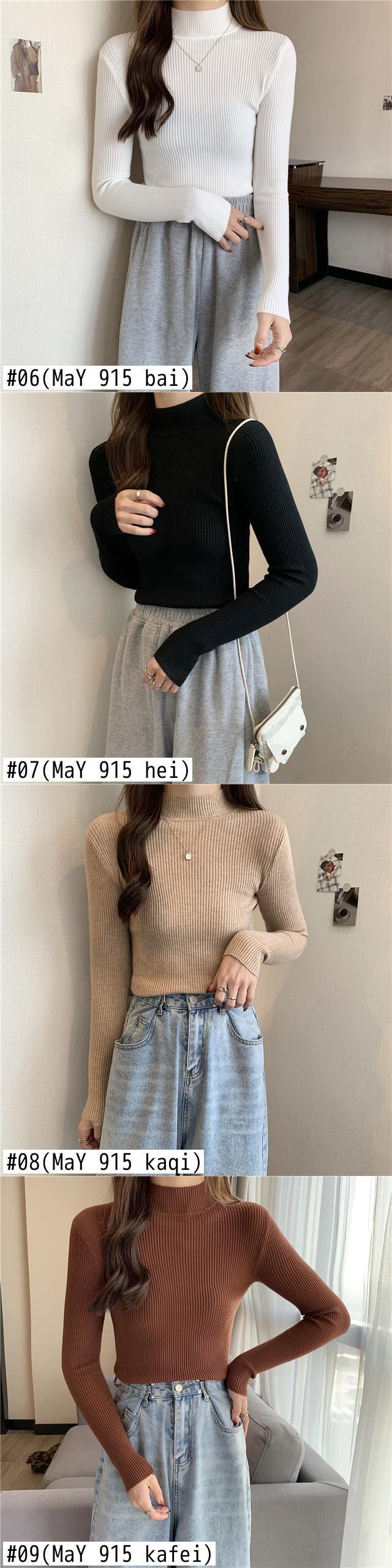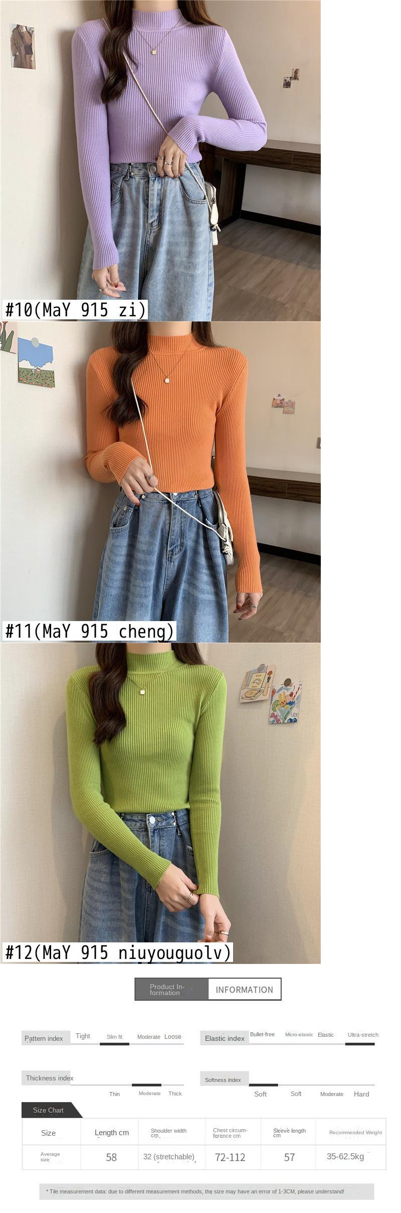 韓国スタイル ニット プルオーバー女性セーター ファッション セーター女性長袖ハーフ タートルネック スリム固体ジャンパー ソフト ホワイト トップス ロング ソリッドカラー Aim23662977309