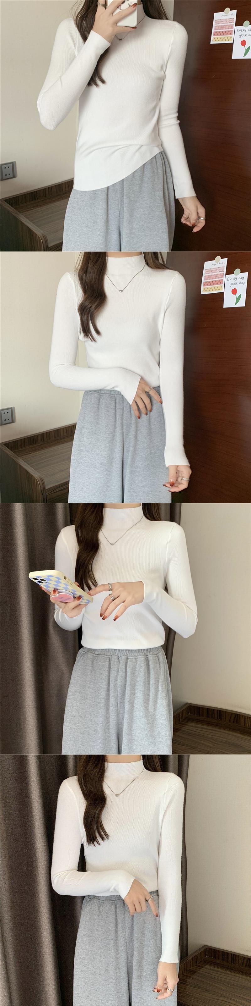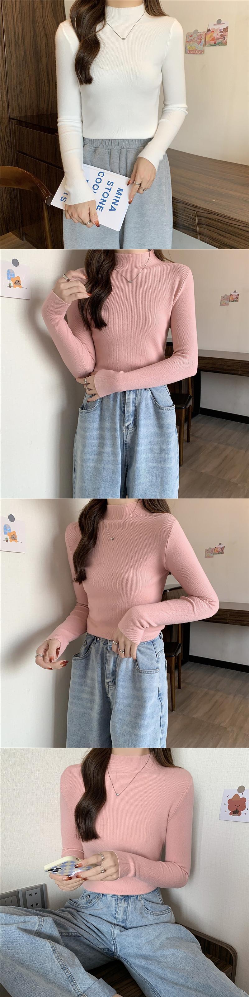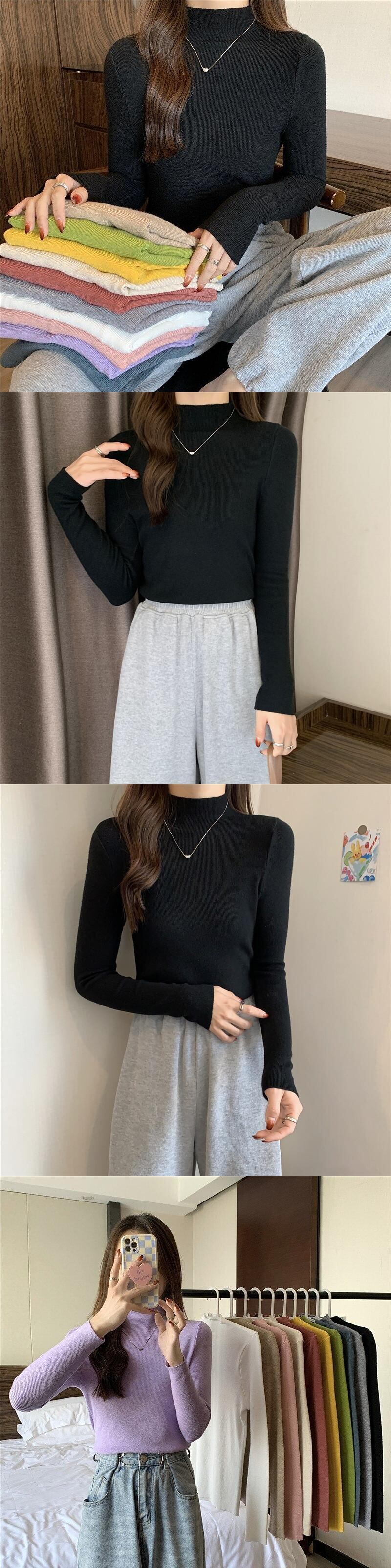 2022 長袖ベースセーター女性プルオーバーソリッドブラックホワイトニットセーターハーフタートルネック基本底入れトップス ロング ソリッドカラー Aim28422863459