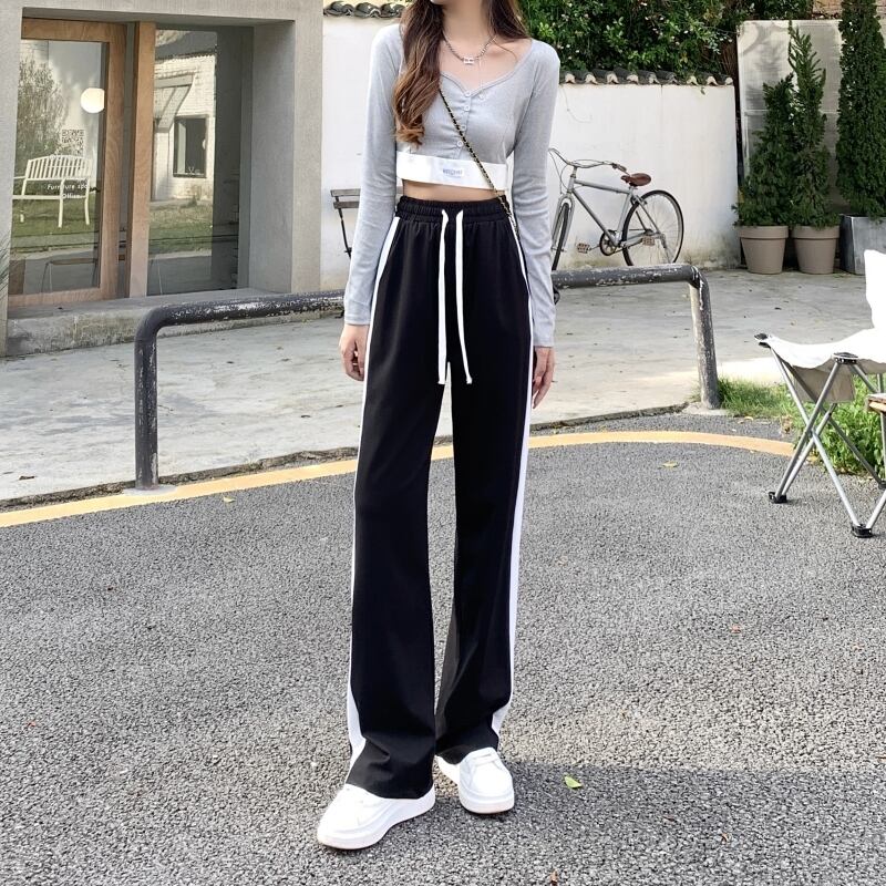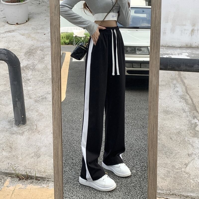 原宿黒パッチワーク巾着ストレートズボンジョギング女性ワイドレッグパンツルーズパンツストリートウエストスウェットパンツ ブラック かわいい ワイドパンツ Aim51714619675