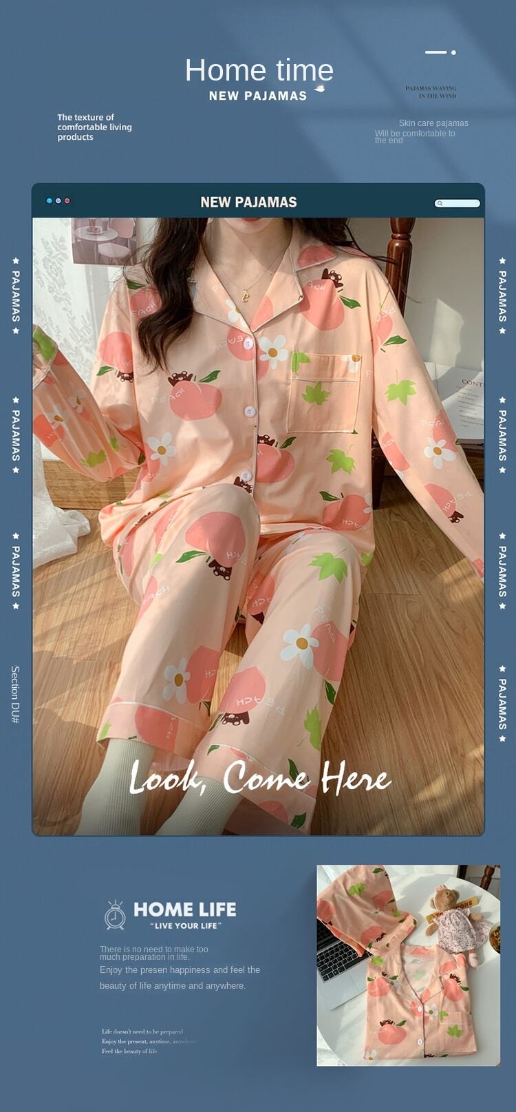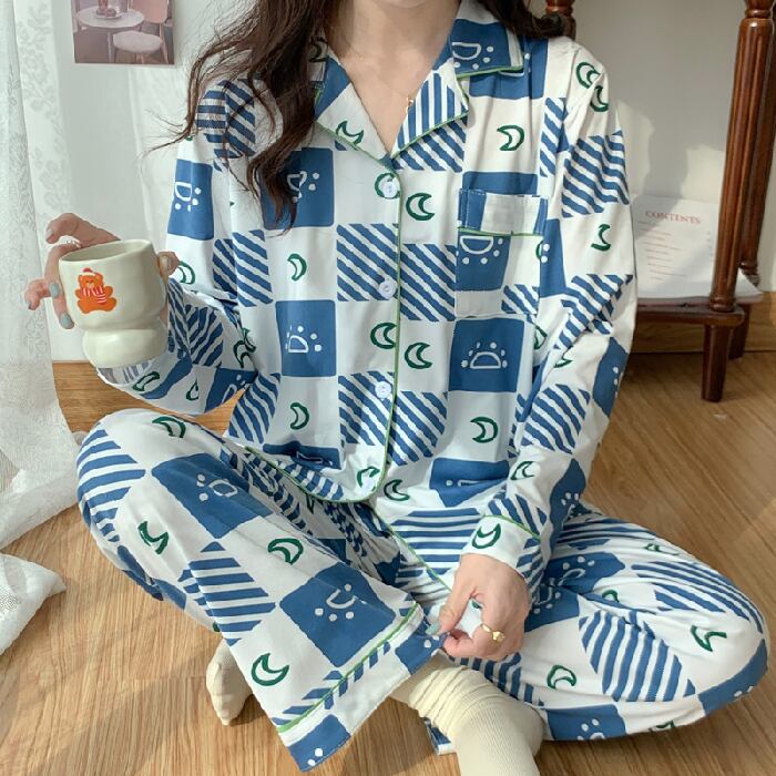 春秋のホームウェアスパースターセット女性のパジャマトップスロングパジャマセット女性パジャマナイトウェアパジャマセットパジャマ スプリング 春物 オータム 秋物 Aim13572680453