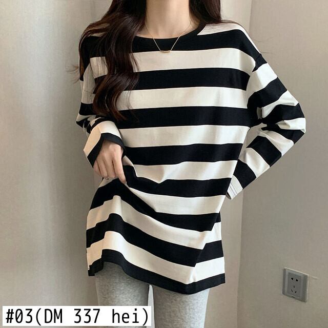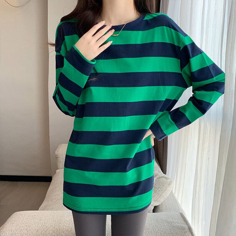 原宿純綿長袖ストライプ Tシャツ女性 O ネック特大底入れ Tシャツソフトロング y2k トップス コットン かわいい Oネック ピュア Aim11062303317