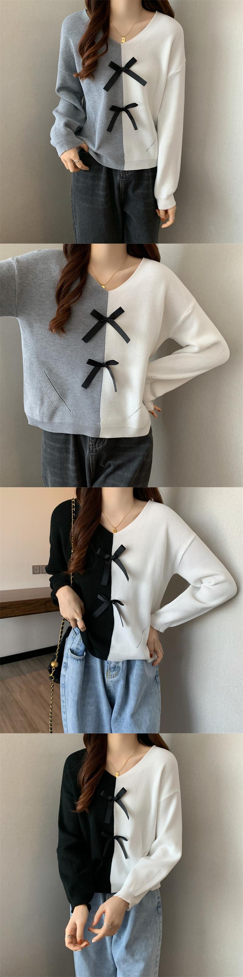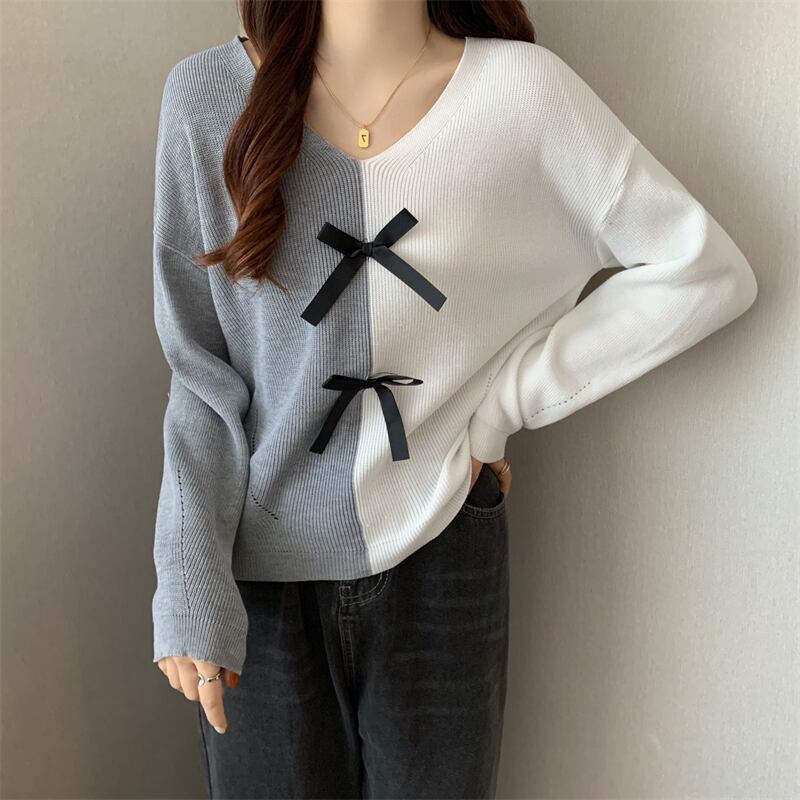 原宿 カラーマッチング レディース セーター 春 秋 ニット プルオーバー Vネック ルーズ ストライプ ソフトニット ジャンパー ベーシックセーター かわいい スプリング 春物 オータム 秋物 Aim9497253999
