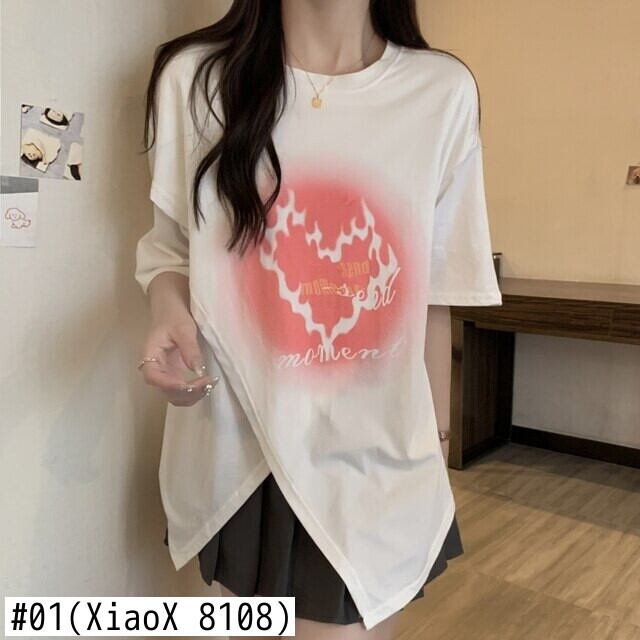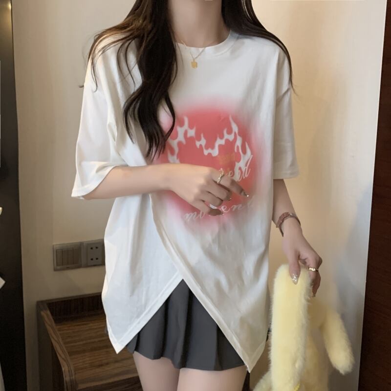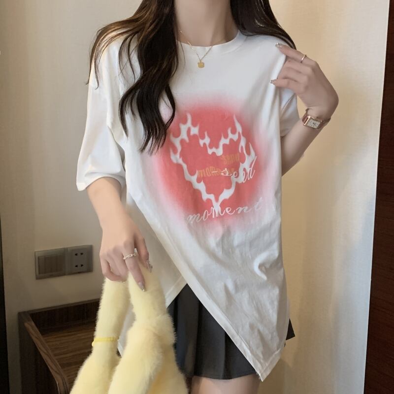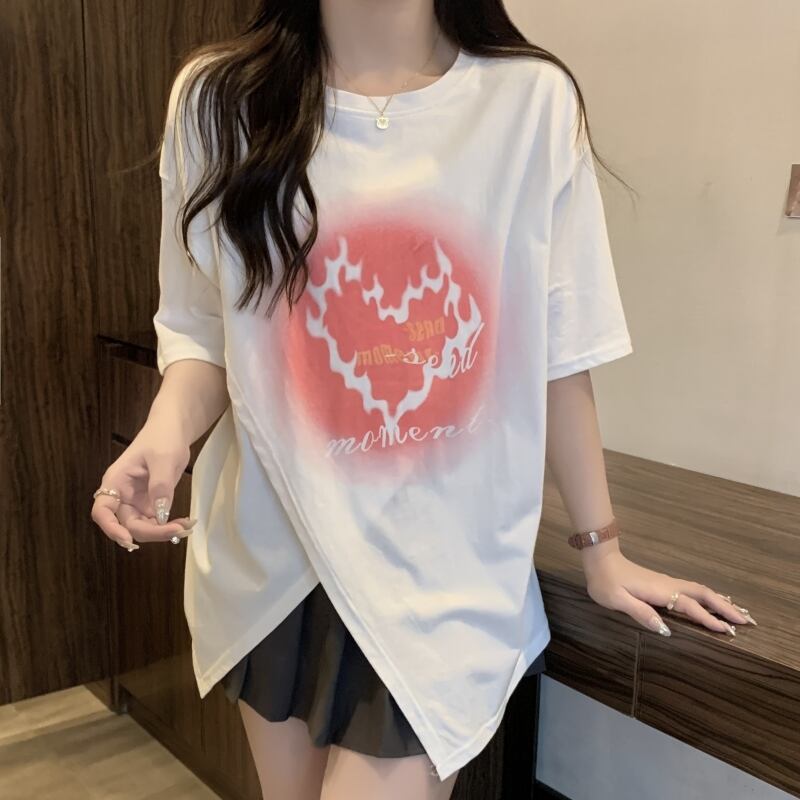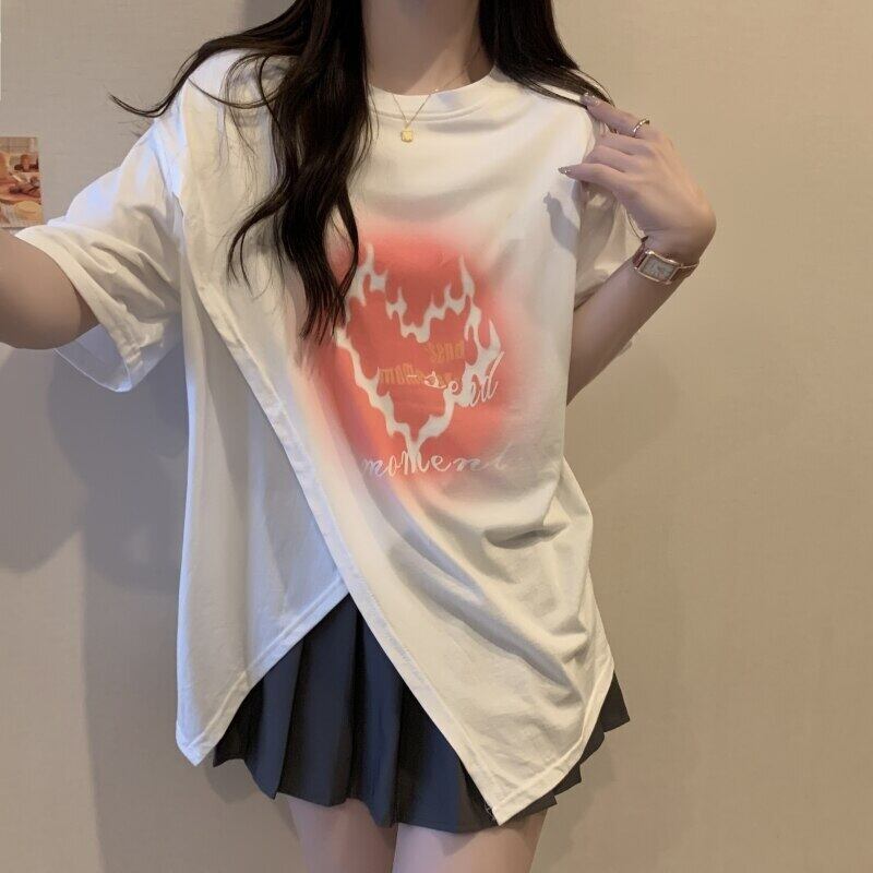 純粋な綿の Tシャツの女性の夏の特大文字印刷不規則な Tシャツかわいいシンプルな O ネック白トップス ホワイト コットン 大人ガーリー サマー 夏物 Oネック Aim92162165529