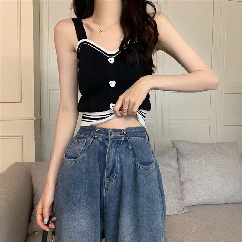 V ネックの女性のセータークロップトップスノースリーブタンクトップスリム固体セクシーな y2k プルオーバー若いニットベストセーター Vネック ソリッドカラー Aim54911874291