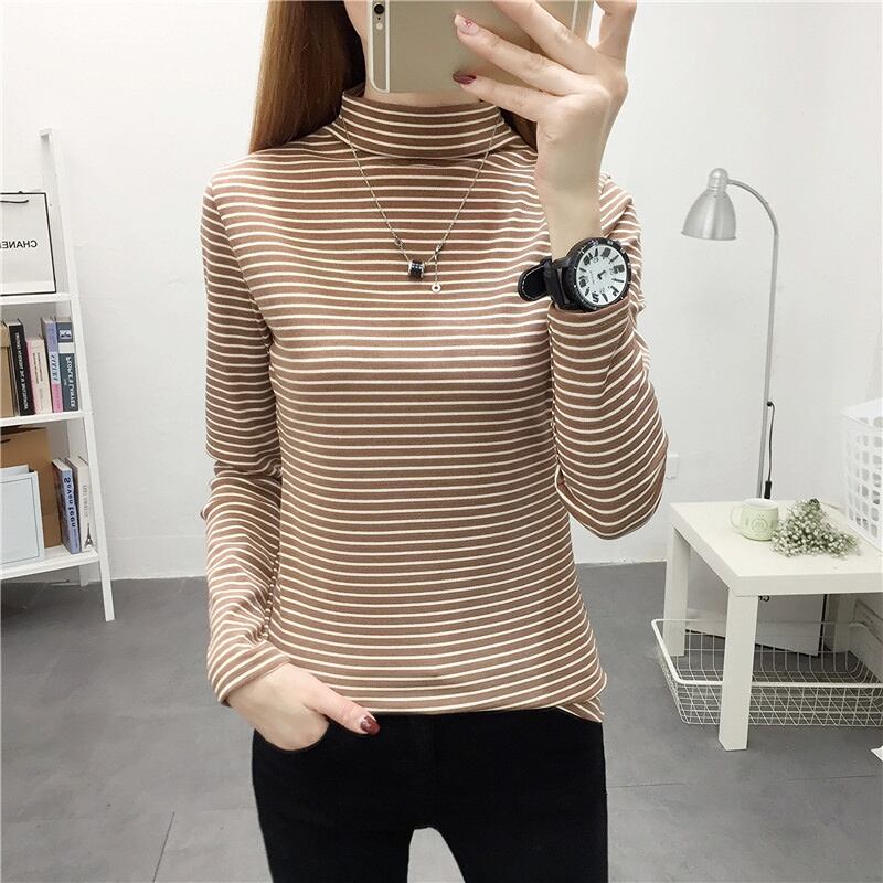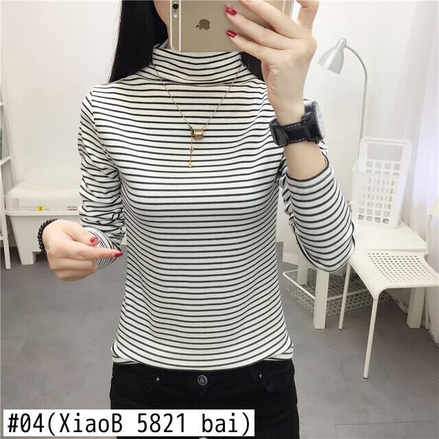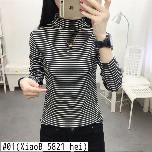ハーフタートルネックベース Tシャツ女性長袖ストライプ底入れ Tシャツカジュアルスリムベーシックレディースシンプル tシャツ ロング Aim18403479200