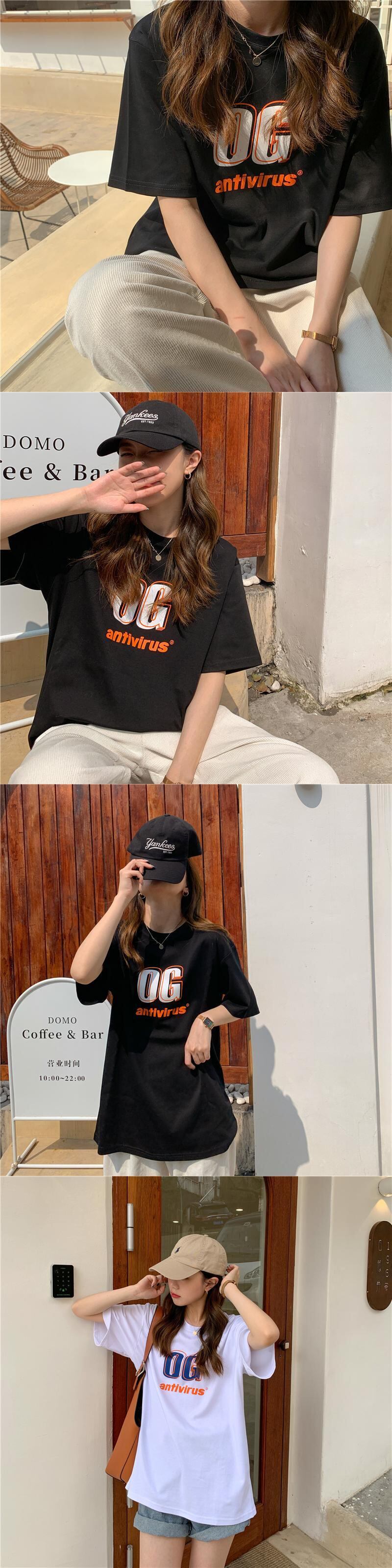 夏レタープリント綿 y2k トップス韓国特大長袖 Tシャツ女性ブラックホワイト原宿ゴス Tシャツ ロング コットン かわいい サマー 夏物 Aim7297218761