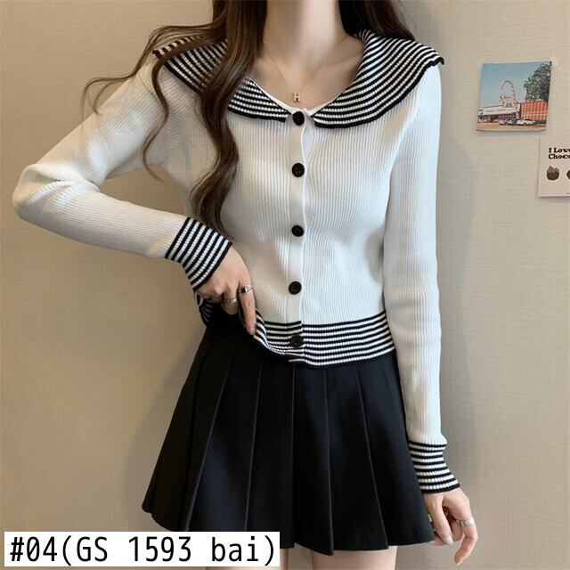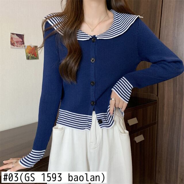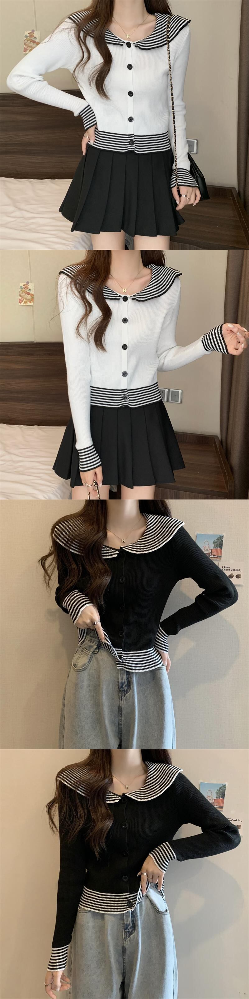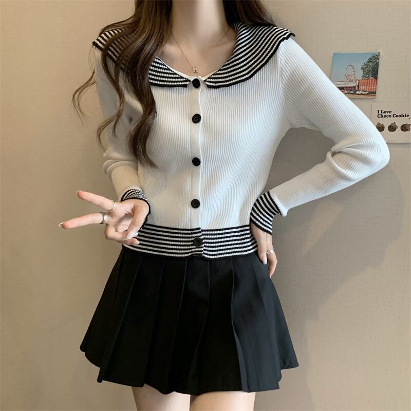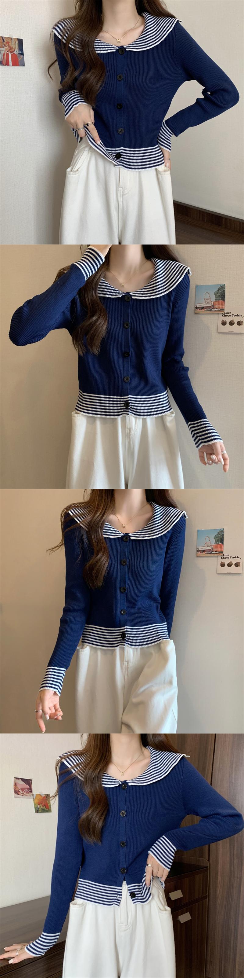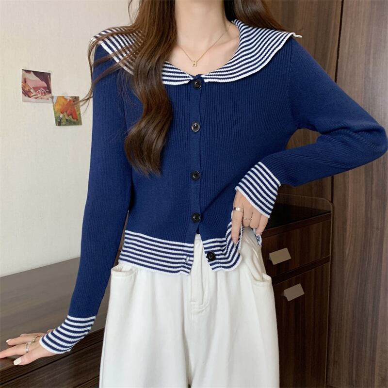 原宿 レディース セーター 春 秋 ニット カーディガン セーラーカラー スリム ボトムス シャツ ストライプ ソフト ニット ジャンパー セーター かわいい スプリング 春物 オータム 秋物 Aim81127566967