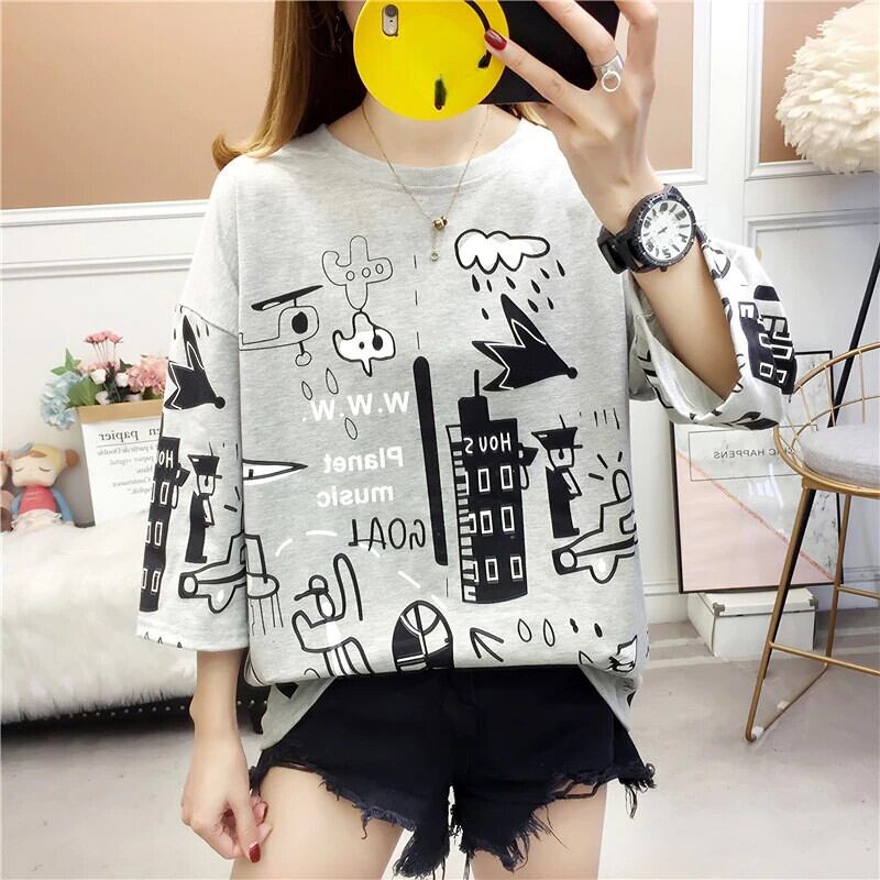 韓国特大長袖 Tシャツ女性の夏のレタープリントコットングラフィック tシャツ y2k トップ原宿 Tシャツ ロング かわいい サマー 夏物 Aim5025805662