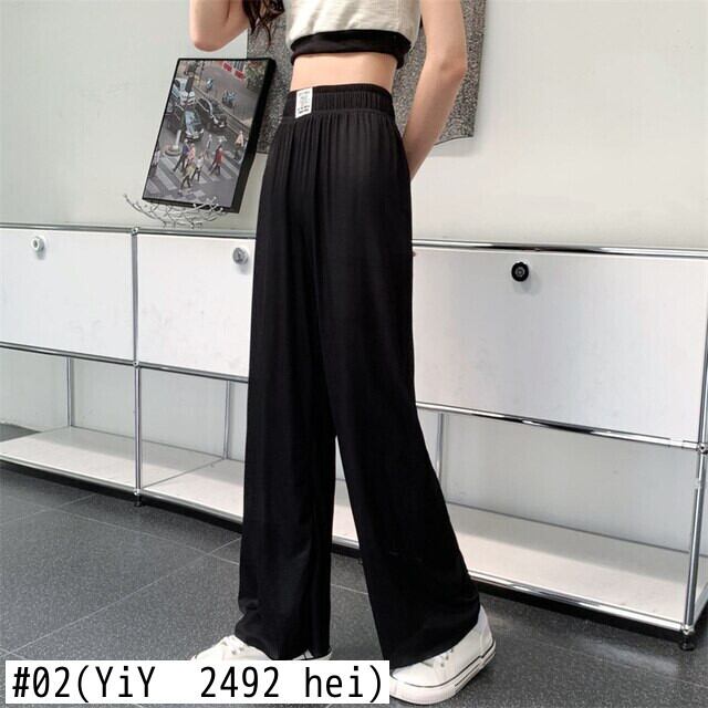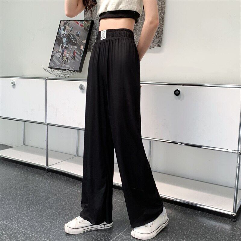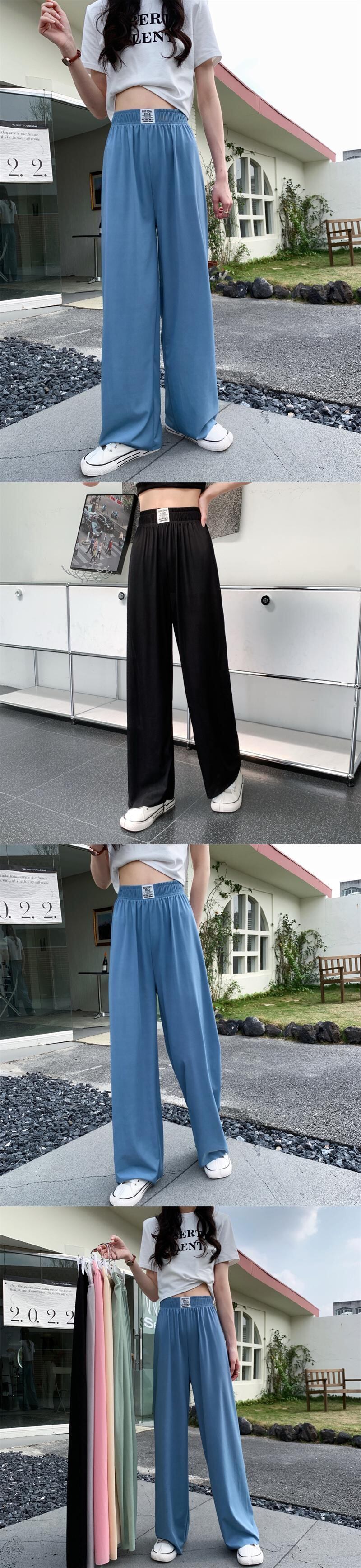 春夏アイスライトワイド脚ズボンファッション少女無地ウエストルーズワイルドストレートパンツ スプリング 春物 サマー 夏物 ワイドレッグ ワイドパンツ シルク ソリッドカラー Aim35907170377