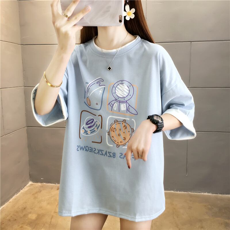 綿面白いグラフィック tシャツ学生白 tシャツ原宿 y2k トップスストリート特大 tシャツ女性の ホワイト コットン かわいい Aim52337189041
