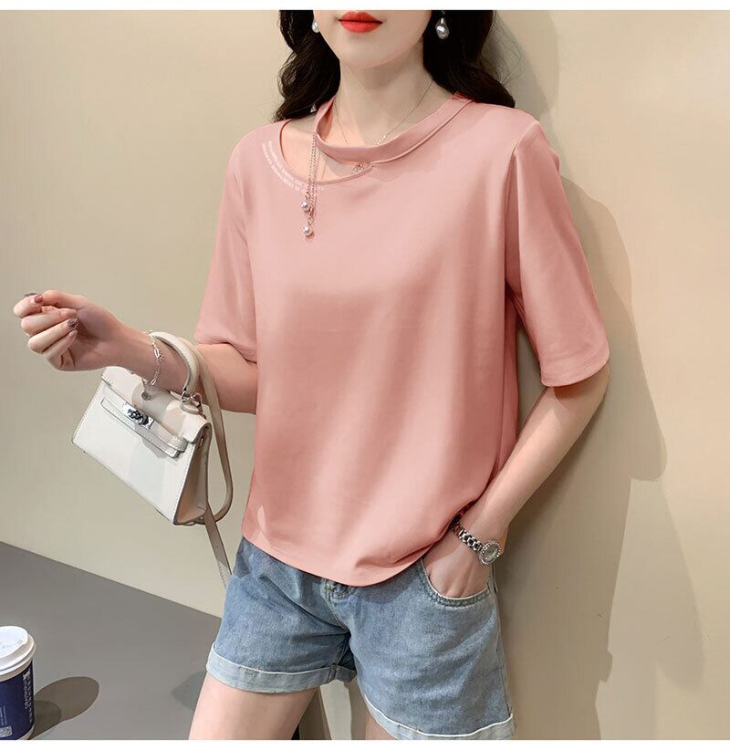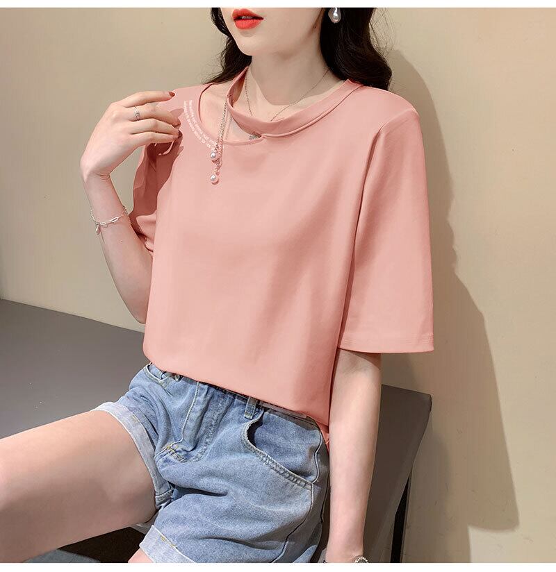 韓国純綿手紙 Tシャツ半袖セクシーな中空アウトルーズカジュアル夏の女性服黒 y2k トップスグラフィック Tシャツ ショート ブラック コットン ハーフスリーブ サマー 夏物 ピュア Aim45770776765