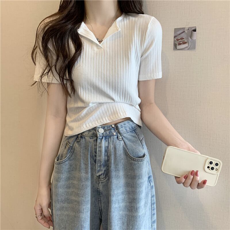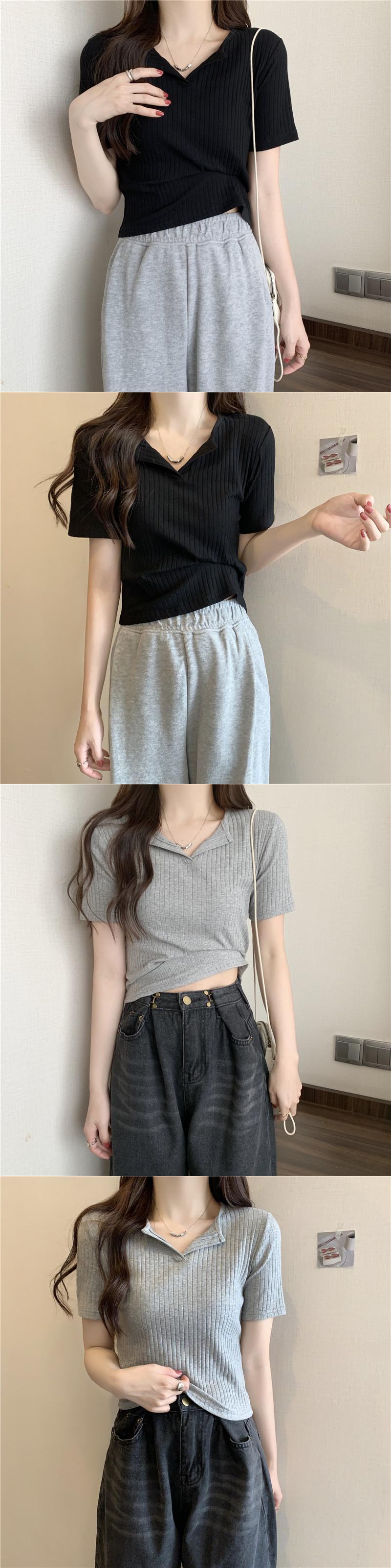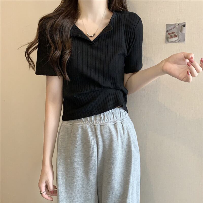夏の女性の半袖 Tシャツソリッド v ネック Tシャツ O ネック原宿 youg ガールカジュアルスリムクロップトップスプルオーバー ショート ハーフスリーブ かわいい サマー 夏物 Oネック Vネック ソリッドカラー Aim23546383809