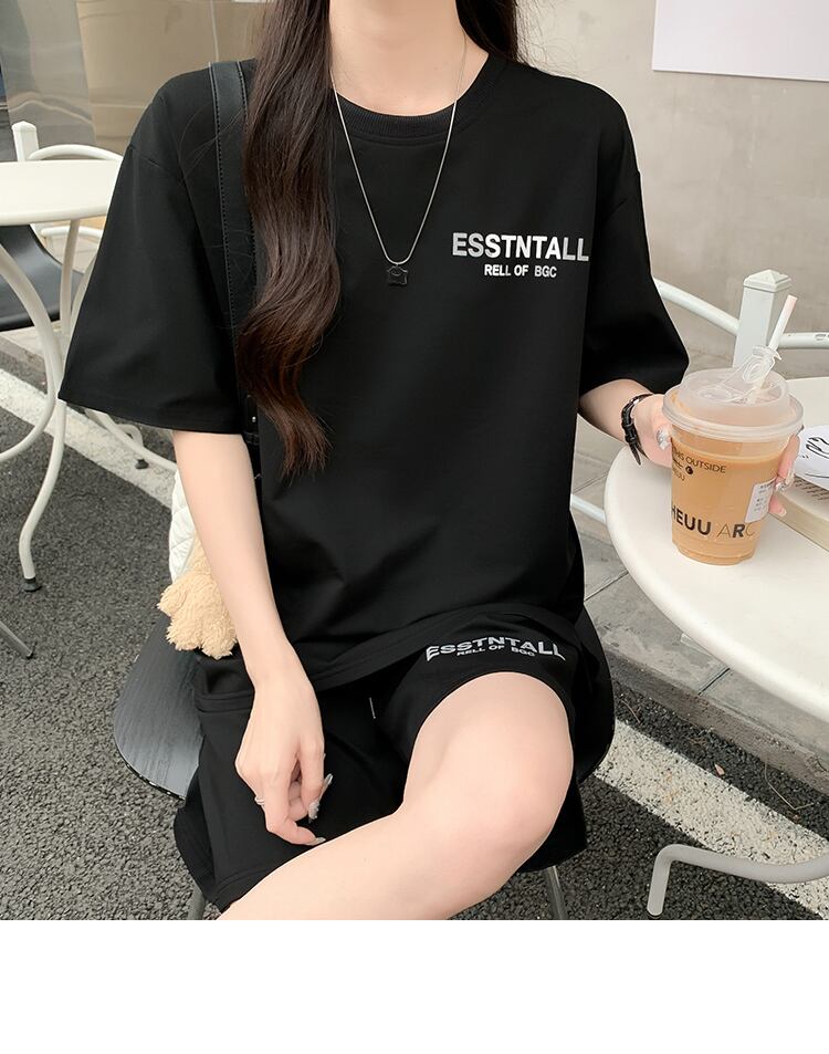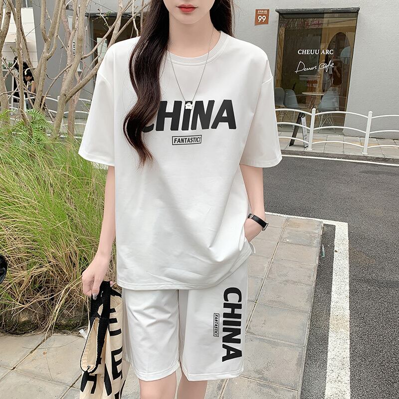 夏ツーピースセット女性トラックスーツ特大スーツ韓国ズボンスーツレタープリントスポーツ t シャツとショーツスポーツウェア サマー 夏物 ブルマー Aim36060016249