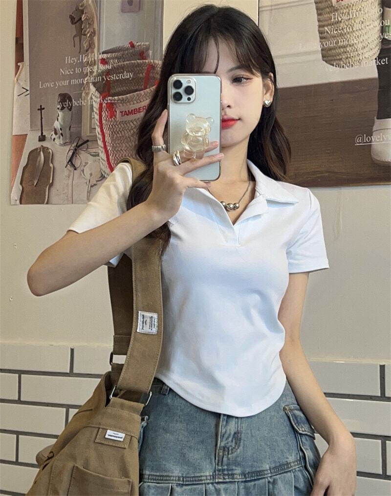 夏不規則なクロップトップ Tシャツ女性固体半袖 Tシャツ女性韓国白黒ショートトップスカジュアル若い Tシャツ ホワイト ブラック ハーフスリーブ サマー 夏物 ソリッドカラー Aim29471843845