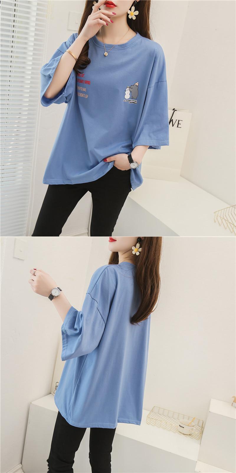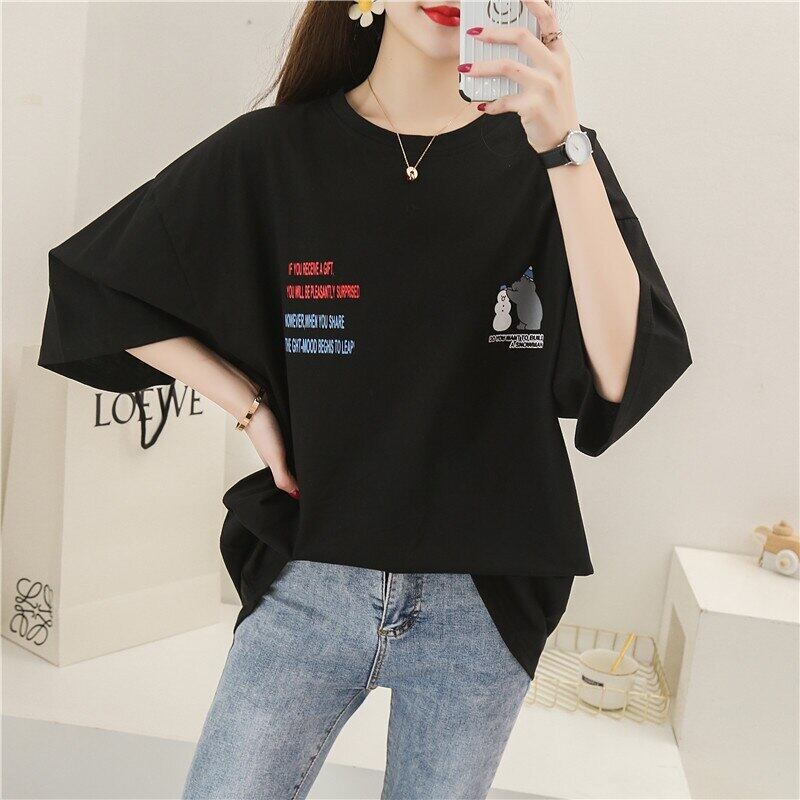 夏漫画プリント綿 y2k トップス韓国特大長袖 Tシャツ女性青黒原宿ゴス Tシャツ ロング ブルー ブラック コットン かわいい サマー 夏物 Aim45364708562