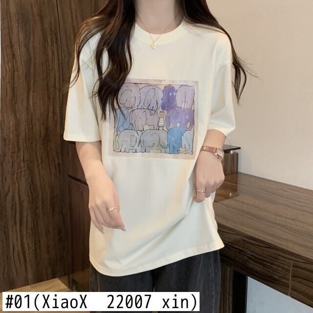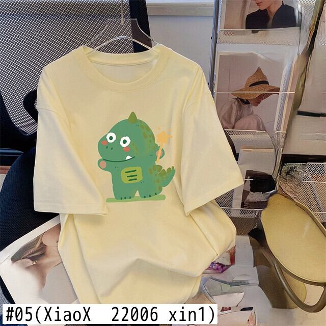 夏特大漫画プリントベーシック Tシャツ純綿 Tシャツ女性かわいいシンプルな O ネックユニセックスロングトップス コットン 大人ガーリー サマー 夏物 Oネック ピュア Aim87910470643