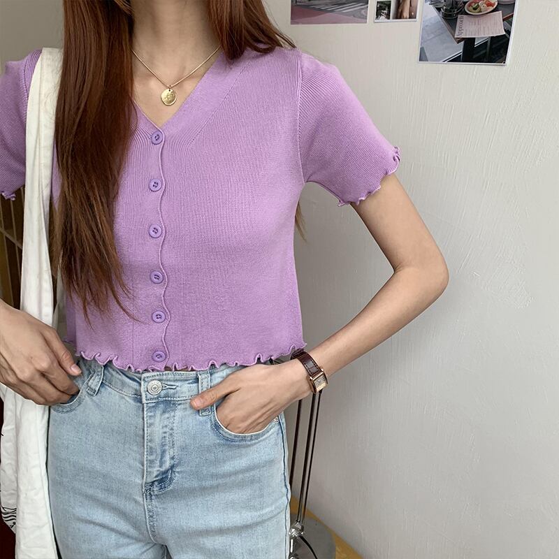 V ネックの女性シングルブレストニットカーディガンセーターファッション固体半袖 y2k クロップトップス女性ニットセーター ショート ハーフスリーブ Vネック ソリッドカラー Aim83003205148