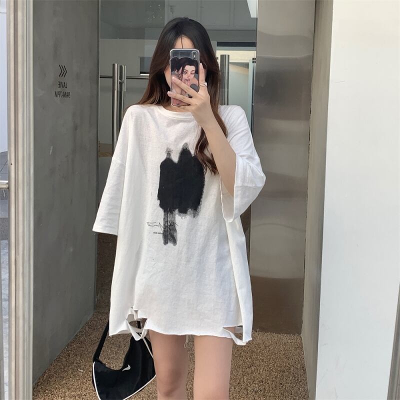 夏半袖シンプルな穴 Tシャツ女性グラフィックおかしいプリントカジュアル特大の基本的な tシャツ原宿 y2k トップス ショート ハーフスリーブ かわいい サマー 夏物 Aim19175266653