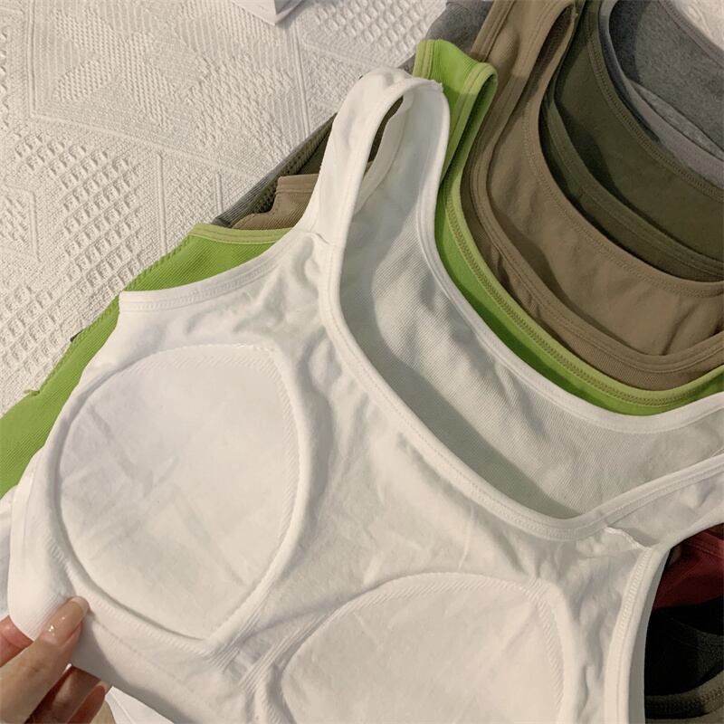 夏の女性クロップトップスセクシーなキャンディーカラーキャミソールチューブトップシームレススポーツタンクトップワイヤレス下着パッド入りブラジャー Bralette ベスト サマー 夏物 Aim31499198637