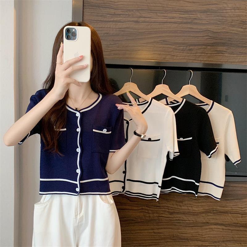 女性オールマッチソリッドショートニットセーター夏薄型スリム半袖 V ネックニットカーディガンクロップトップ ハーフスリーブ サマー 夏物 Vネック ソリッドカラー Aim93932409193