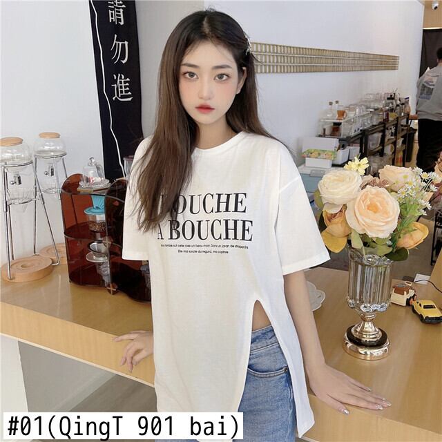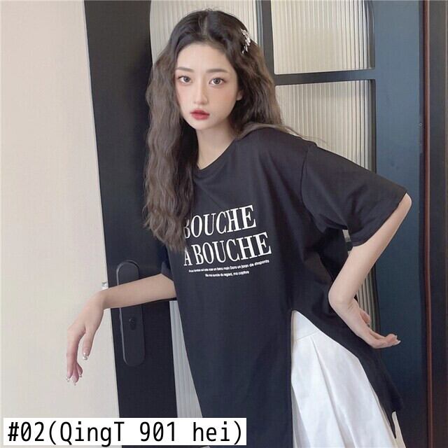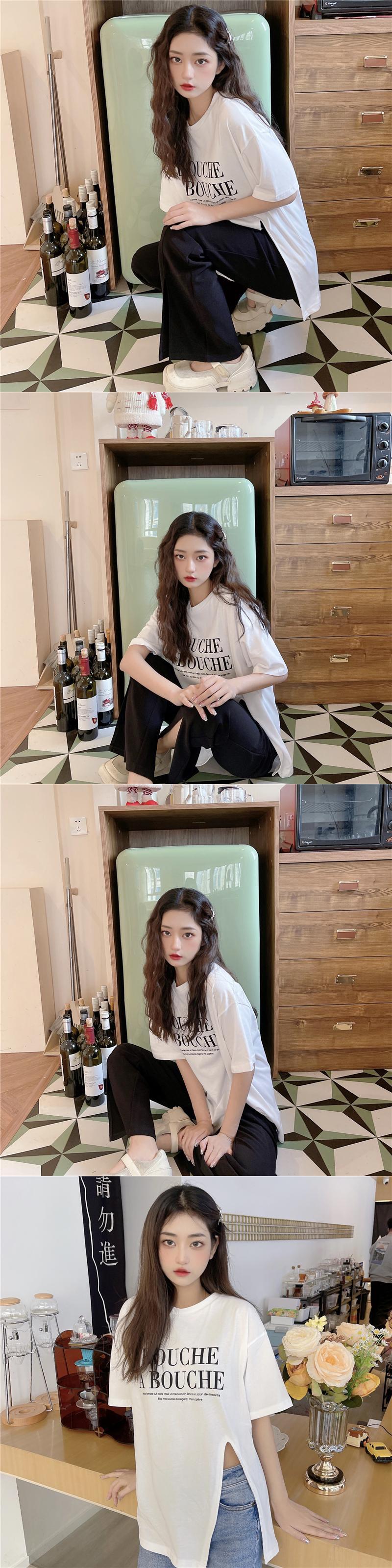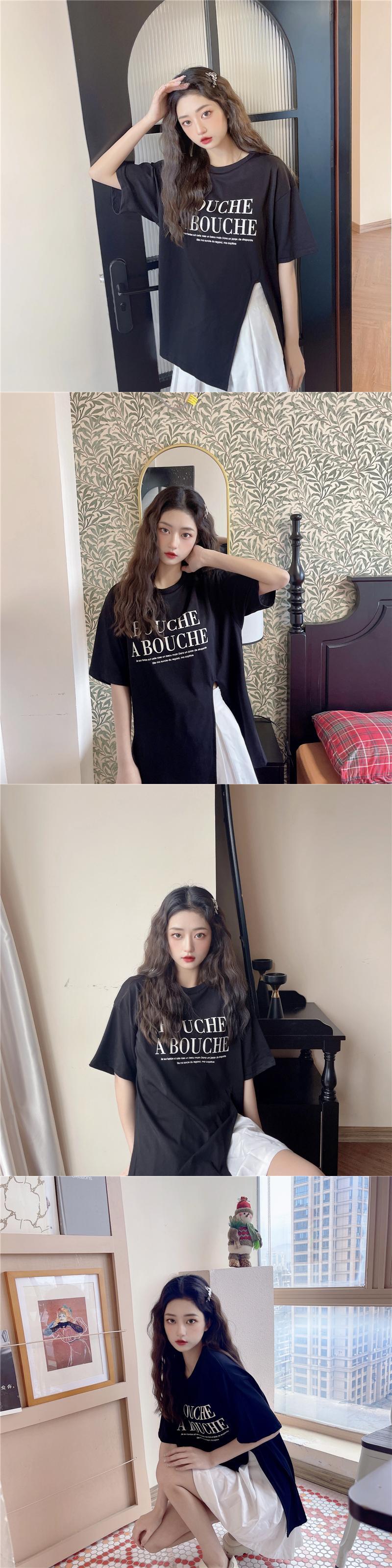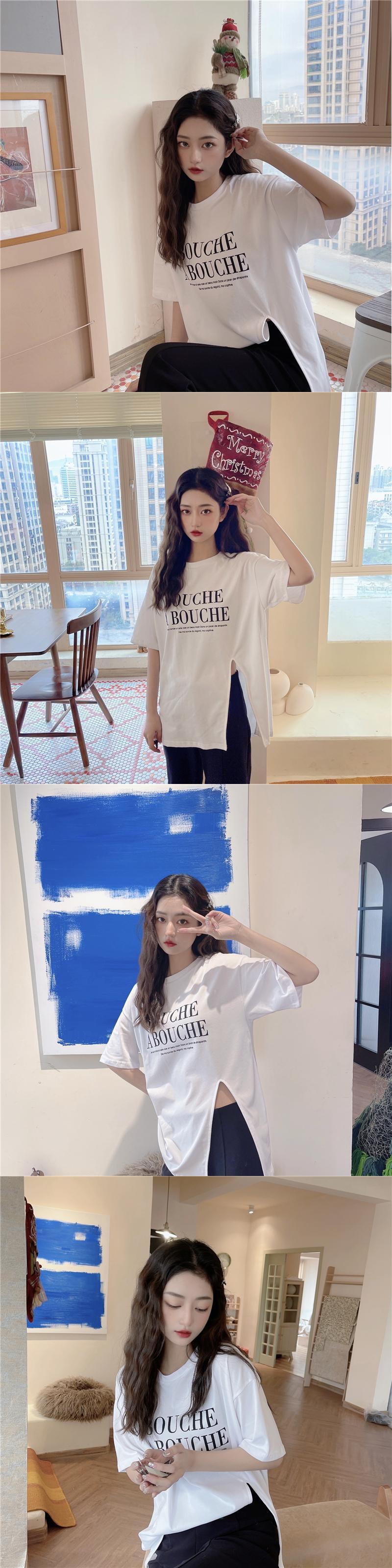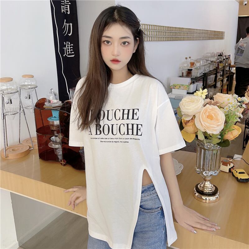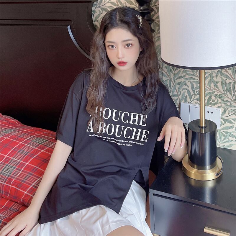 原宿レタープリント特大 tシャツファッション純綿サイドスプリット女性 tシャツ夏半袖女性 tシャツ y2k トップス ショート コットン ハーフスリーブ かわいい サマー 夏物 ピュア Aim26334032227