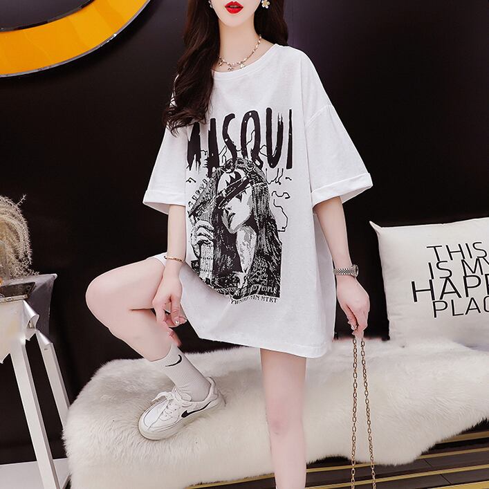 韓国純綿おかしいプリント Tシャツ原宿半袖特大カジュアルストリート夏の女性 y2k トップスグラフィック Tシャツ ショート コットン ハーフスリーブ かわいい サマー 夏物 ピュア Aim1808015872
