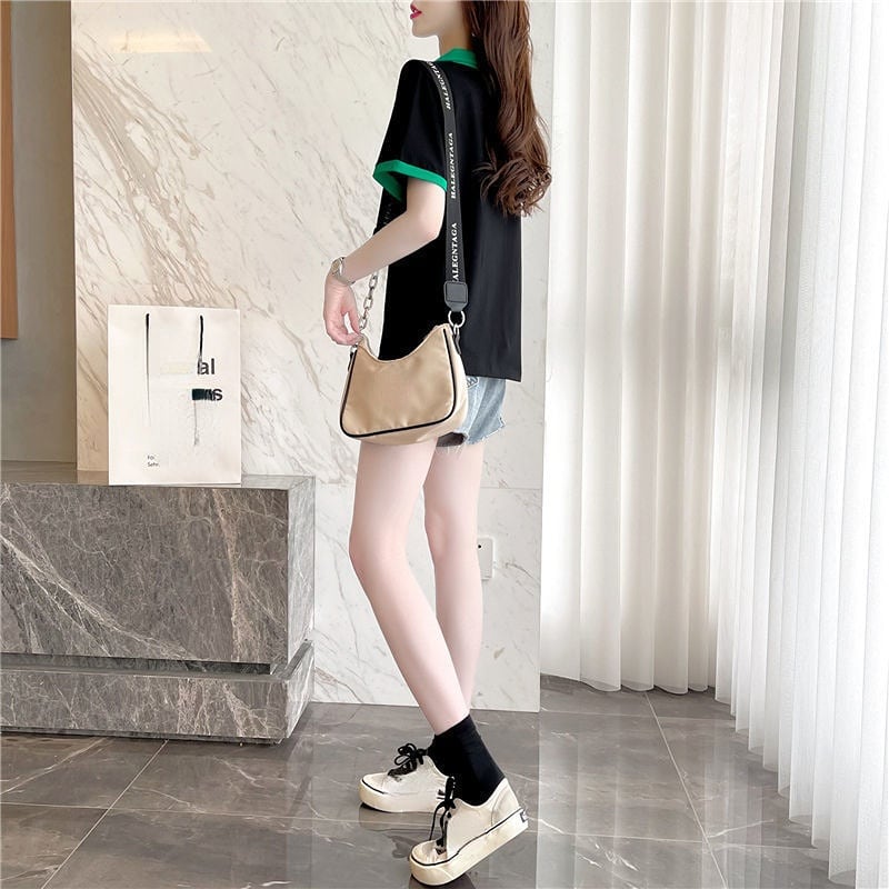 韓国文字刺繍コントラスト Tシャツ夏半袖ルーズトップス V ネックコットン原宿プルオーバー ショート ハーフスリーブ かわいい サマー 夏物 Vネック Aim94011123470