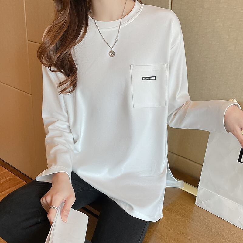 原宿純綿長袖無地 Tシャツ女性 Y2k トップシンプルなポケットサイドスプリットベーシックな白 Tシャツストリート ロング ホワイト コットン かわいい ピュア ソリッドカラー Aim58728104889
