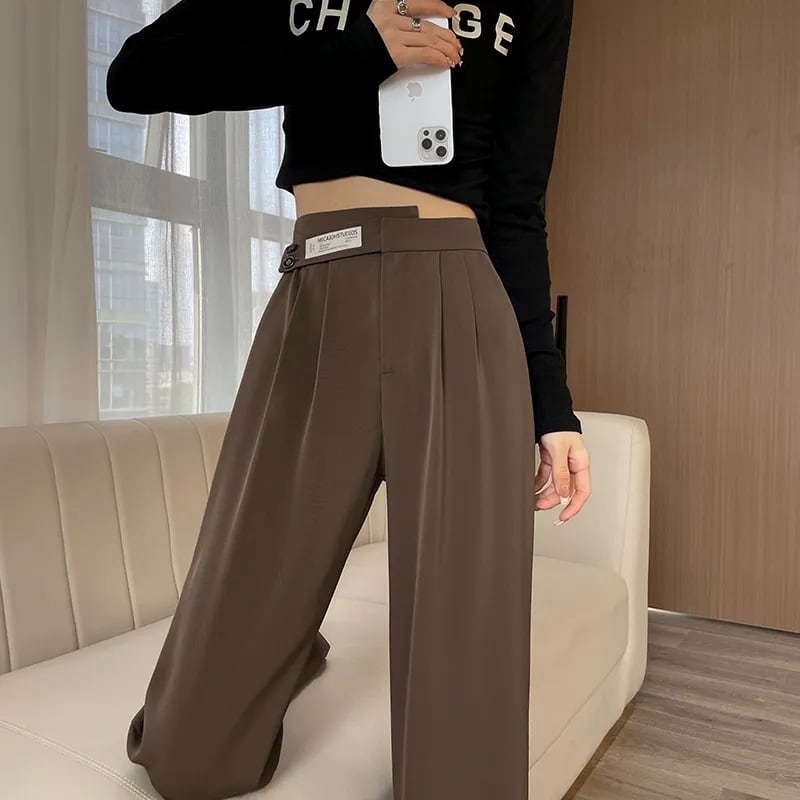 春秋緩いオフィスレディ薄いストレートレッグパンツ韓国ソリッドハイウエストワイドレッグパンツ女性の黒のスーツパンツ ハイウェスト ブラック スプリング 春物 オータム 秋物 ワイドパンツ ソリッドカラー 会社 学校 通勤や通学にも Aim69146328989
