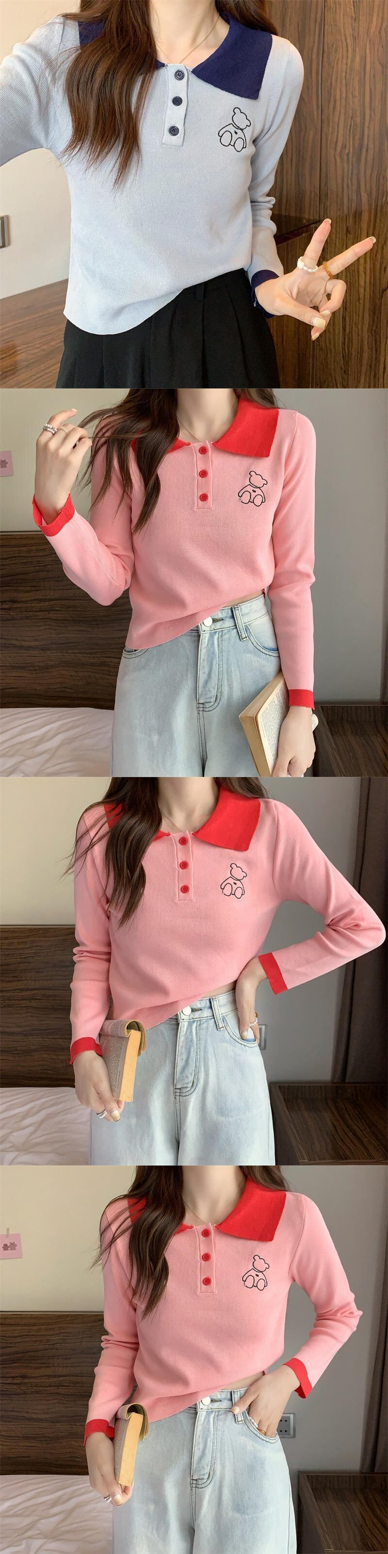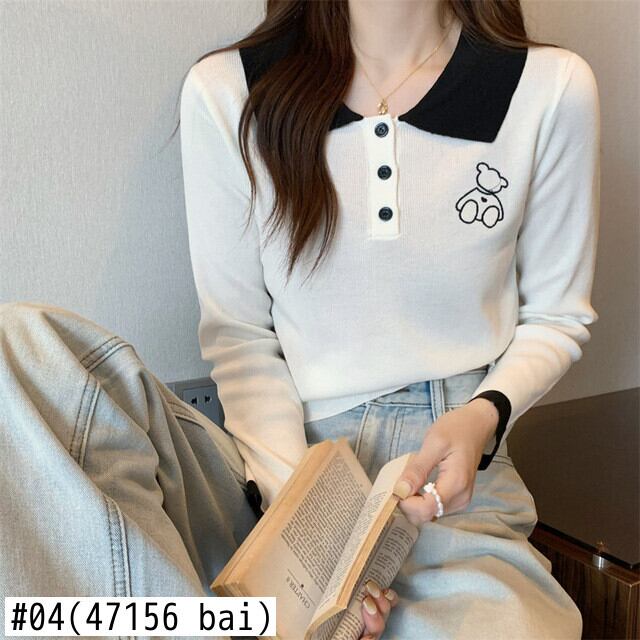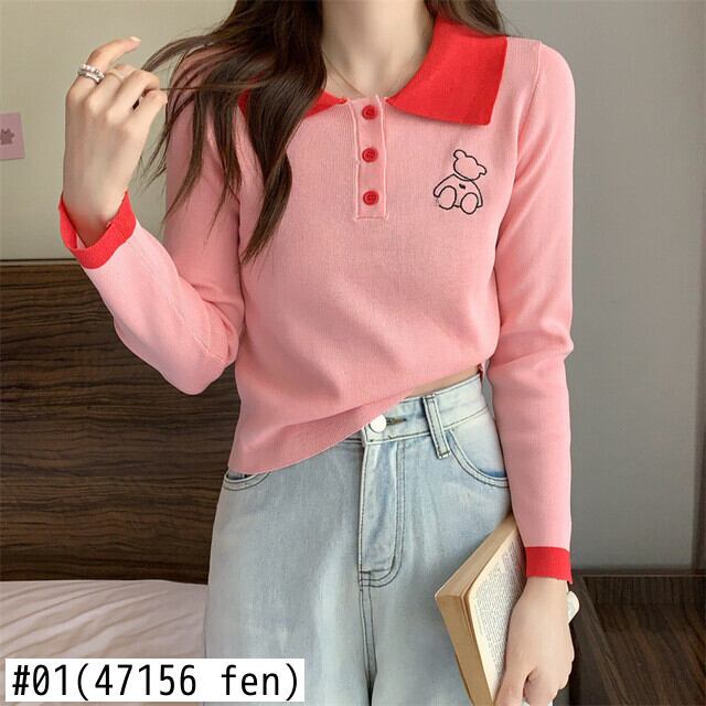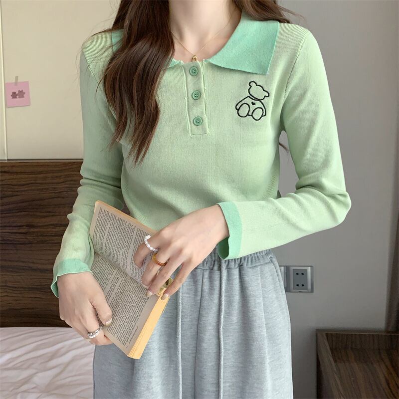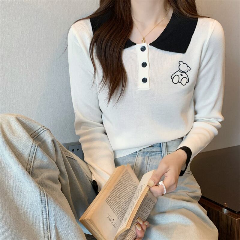 韓国底入れシャツ女性の y2k トップス漫画刺繍カジュアルスリムボタンニットセーター女性プルオーバーオールマッチセーター Aim22059062674