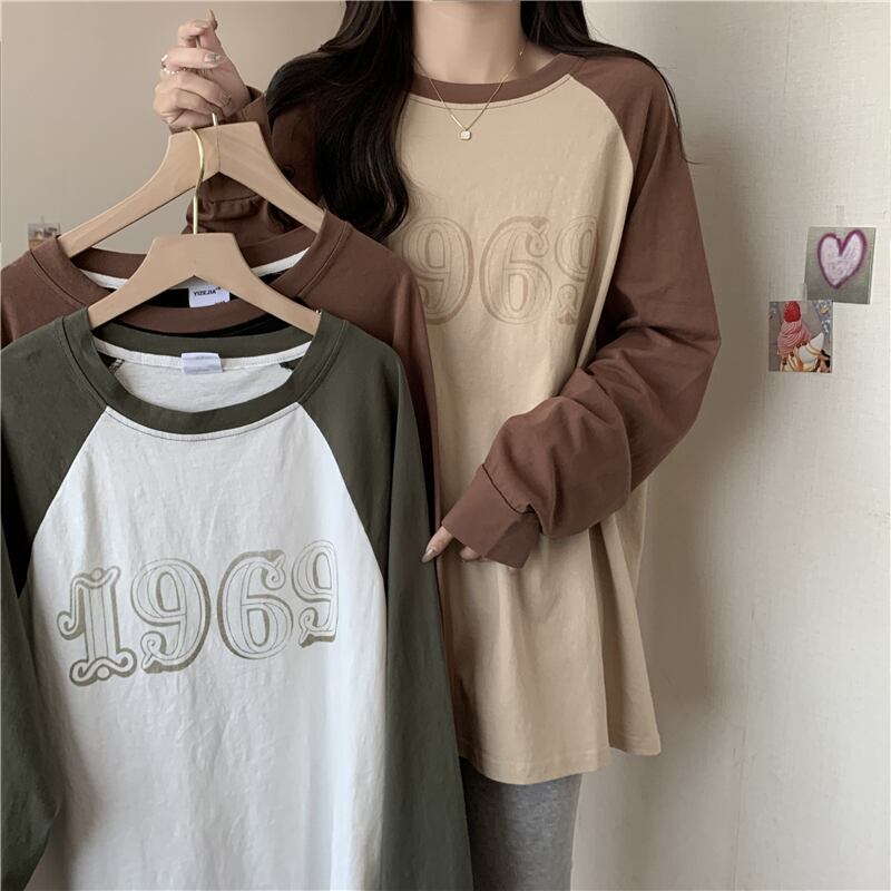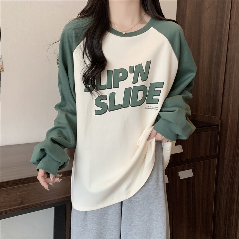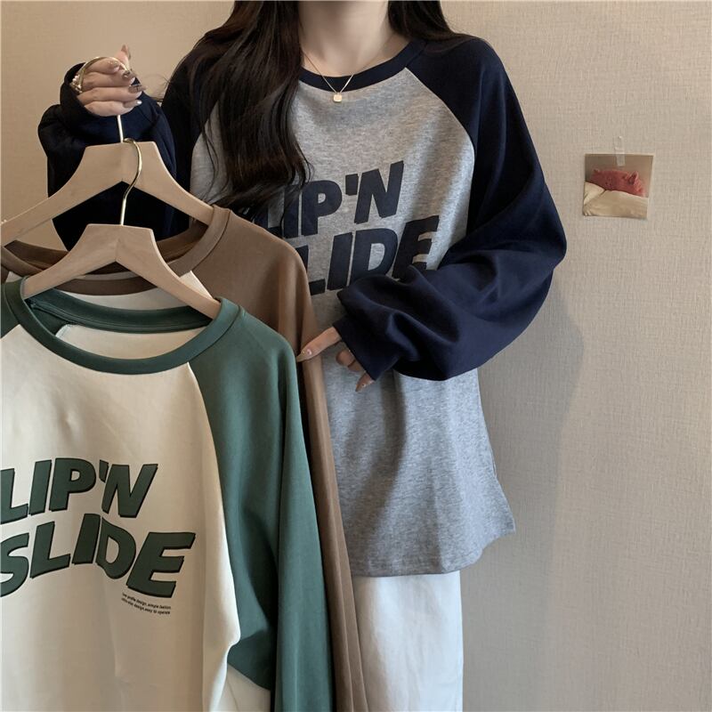 秋冬フリース長袖 Tシャツ女性服原宿特大手紙カラーマッチング Tシャツ暖かい y2k トップ ロング かわいい オータム 秋物 ウィンター 冬物 Aim61321766519